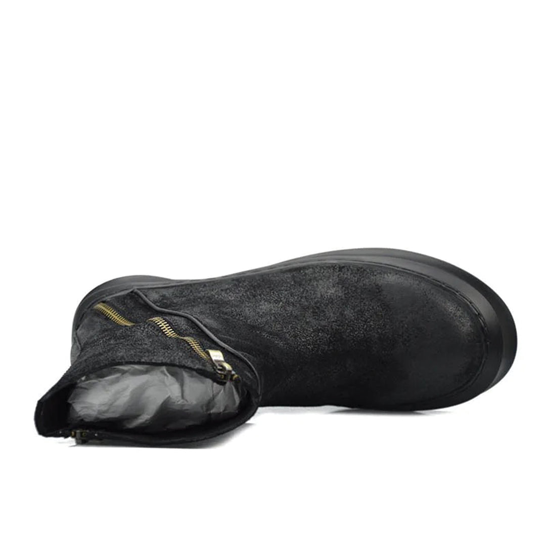 When function becomes sculpture. Premium cowhide leather and suede construction meets gravity-defying platform architecture that redefines what ground contact means. Precision-placed zipper systems navigate architectural curves while inflated sole technology delivers cloud-like suspension across industrial-strength foundations. These aren't boots that follow terrain—they create their own landscape, built for those who understand that the future walks differently.