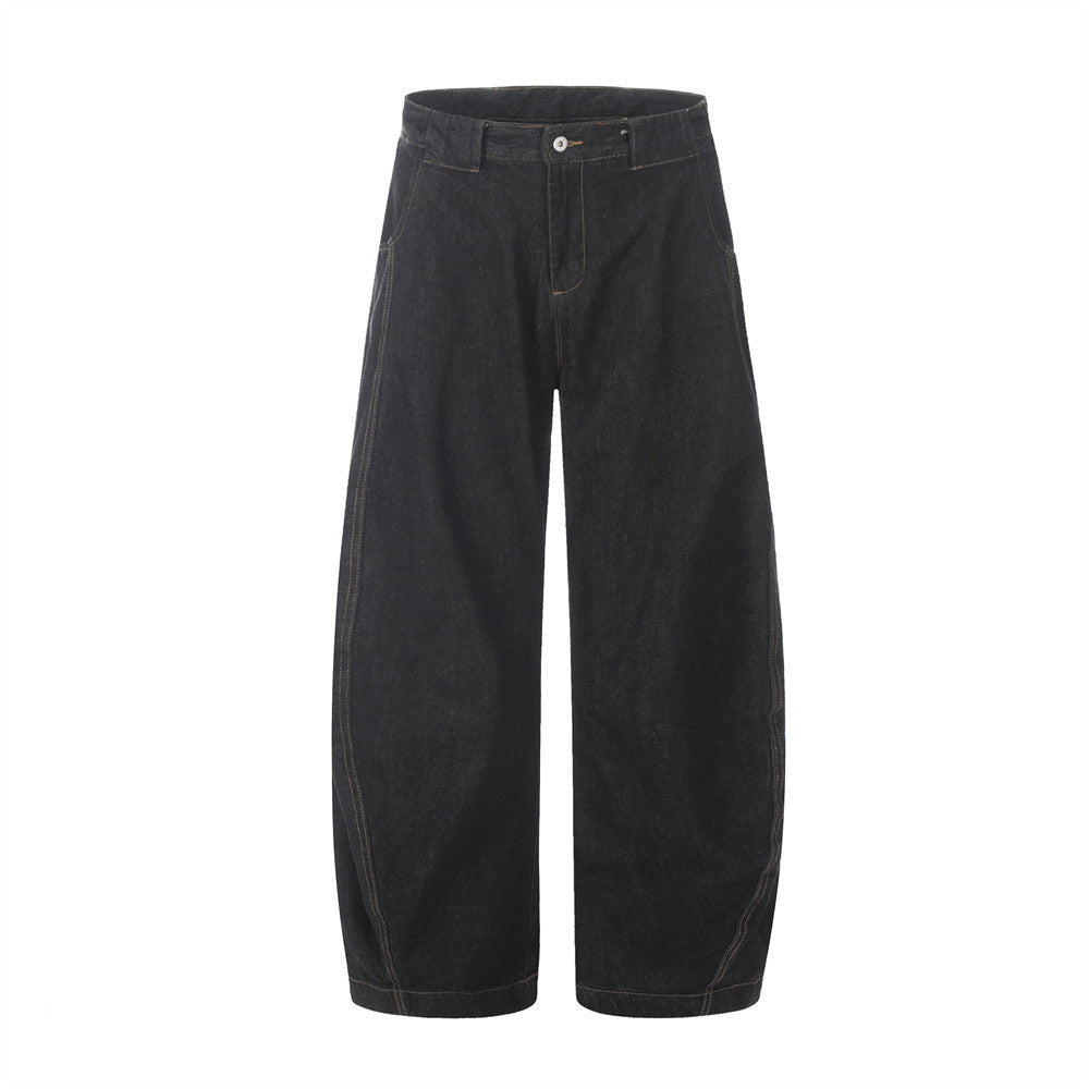 Product information: Men's Black Wide Leg Jeans - Loose Fit Denim Pants