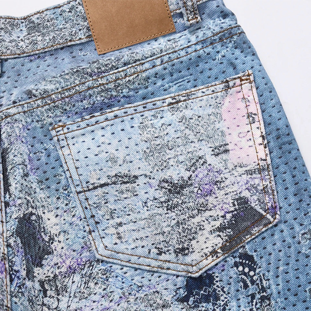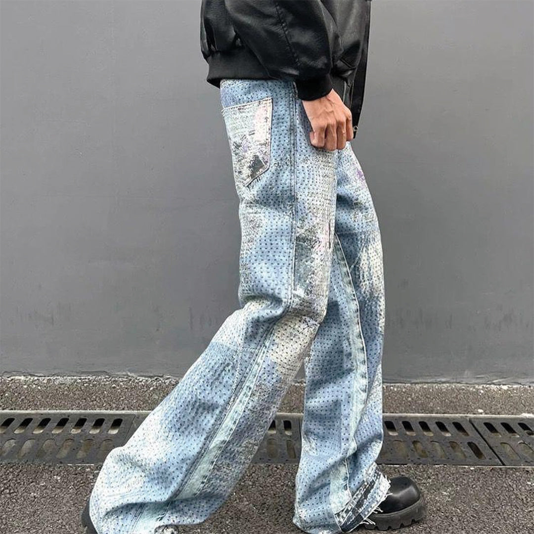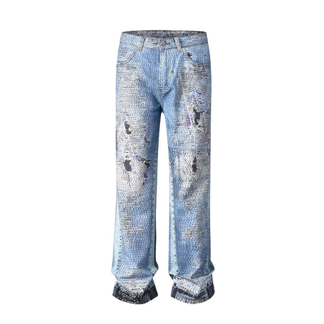 Hand-applied rhinestone embellishment meets strategic distressing on premium cotton denim built for bold daily expression. The 3D paisley texturing and vintage-inspired wear patterns create pieces that catch light and develop unique character, while the loose boot-cut construction ensures comfort through every statement-making moment.
