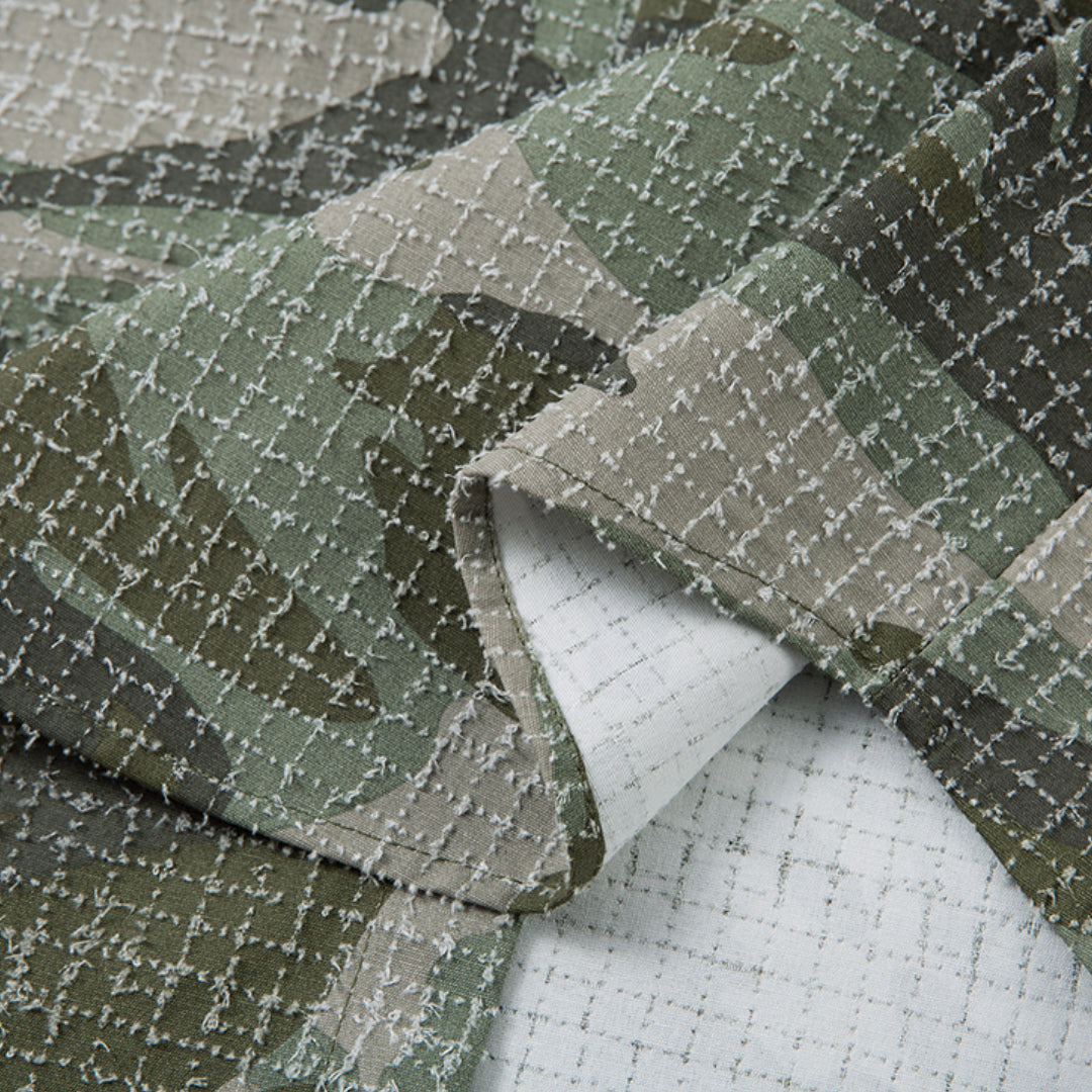 - Camouflage Innovation: Traditional military pattern reimagined through grid overlay technique