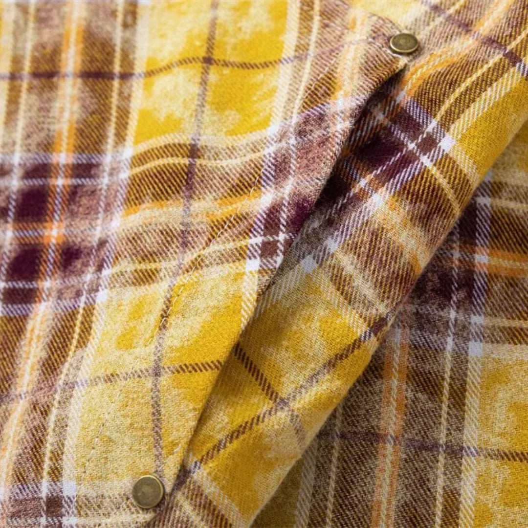 Sharp collar and structured fit elevate a classic plaid