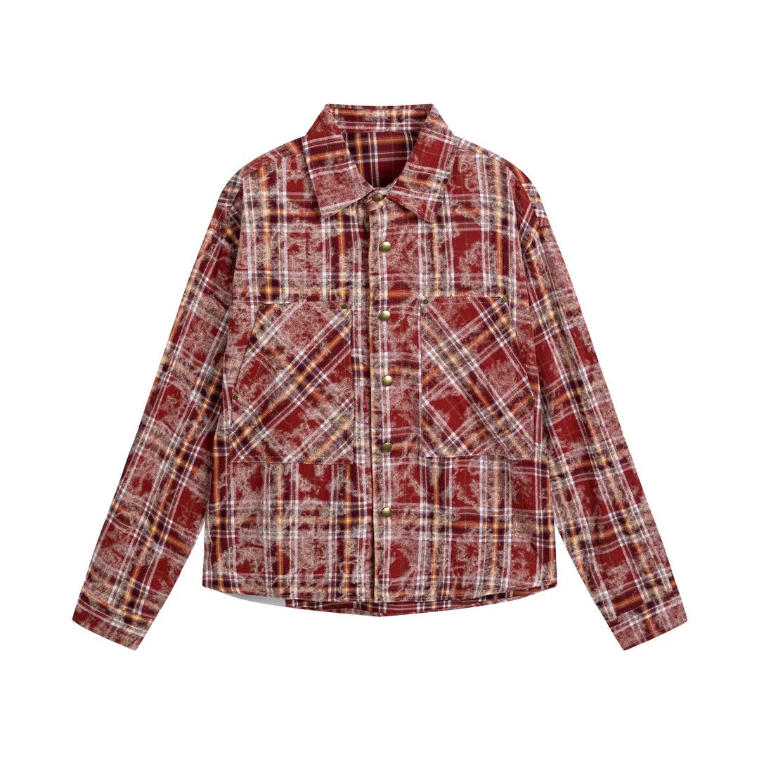 A fresh take on the timeless flannel, this plaid jacket fuses classic structure with laid-back attitude. Crafted from breathable cotton broadcloth, it features oversized front patch pockets, a crisp turn-down collar, and a single-breasted button closure for a clean, elevated silhouette. Relaxed sleeves and buttoned cuffs add comfort and versatility, making it ideal for transitional layering.