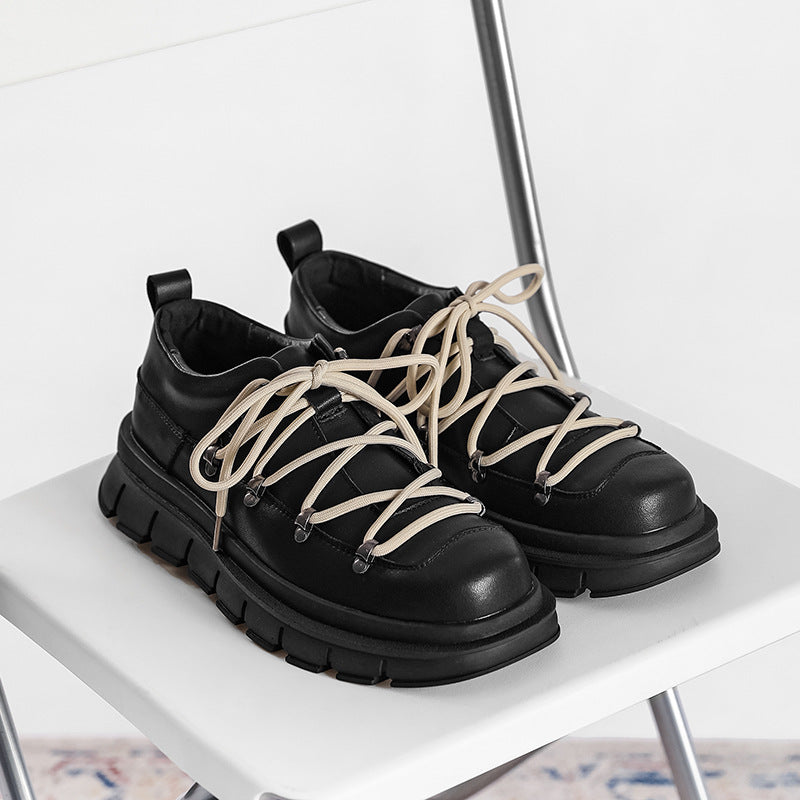 Cowhide Casual Shoes - Japanese Style Lace-Up Shoes
