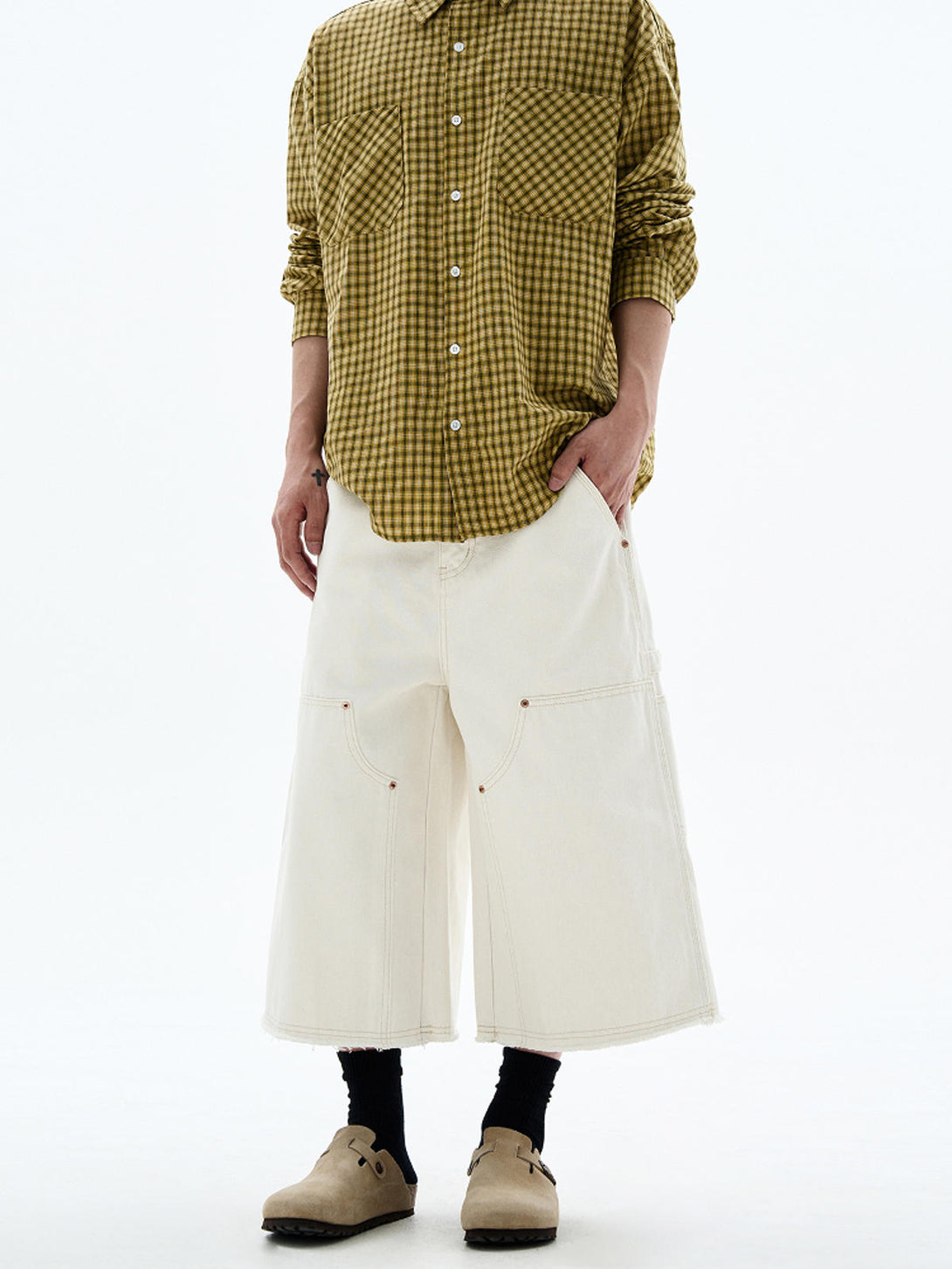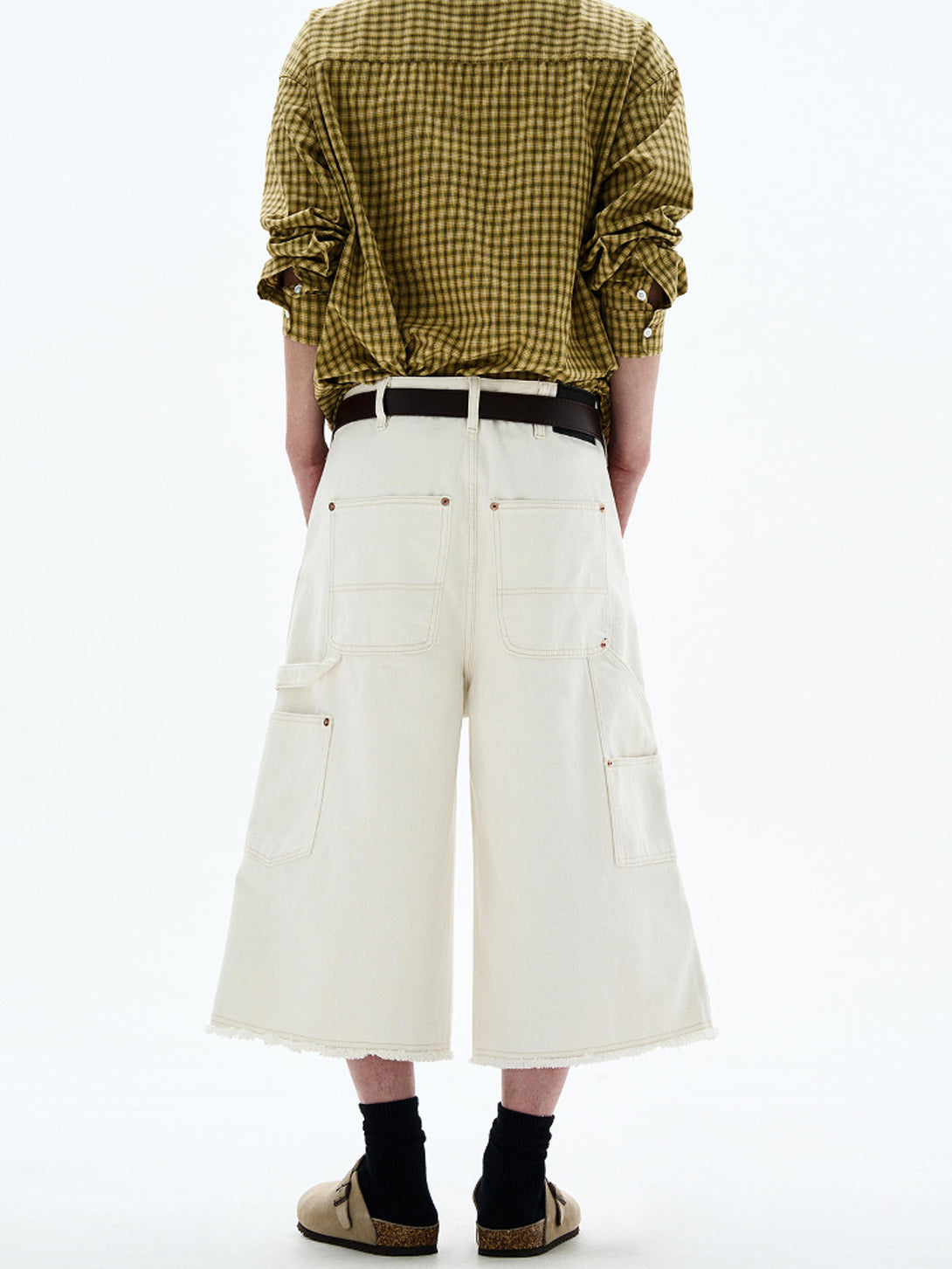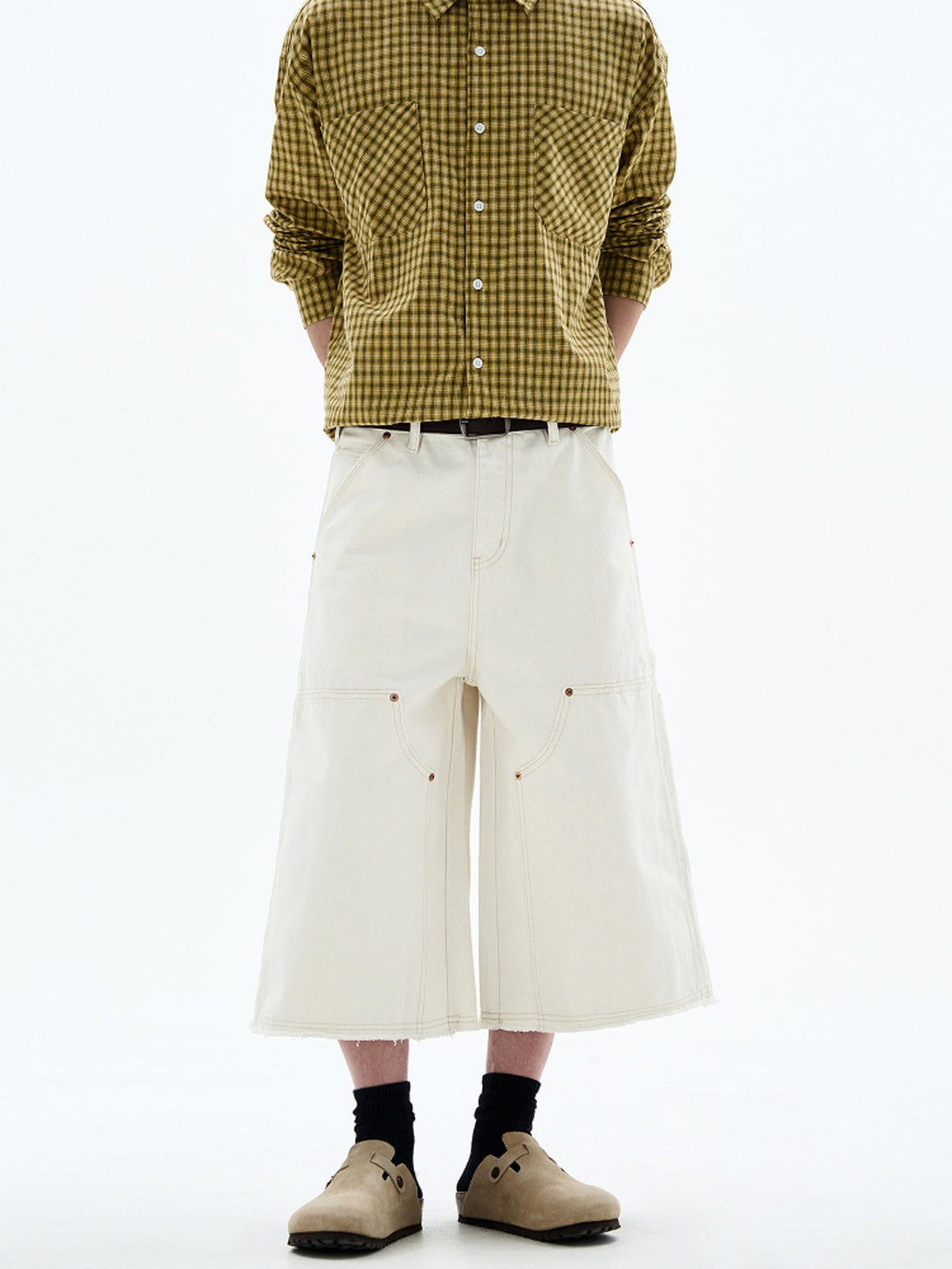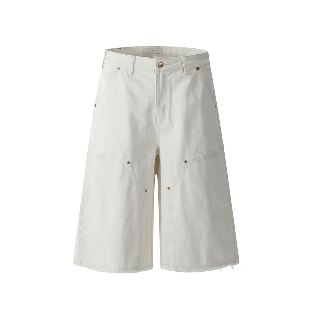 Cream Eyelet Carpenter Jorts - Mid-Waist