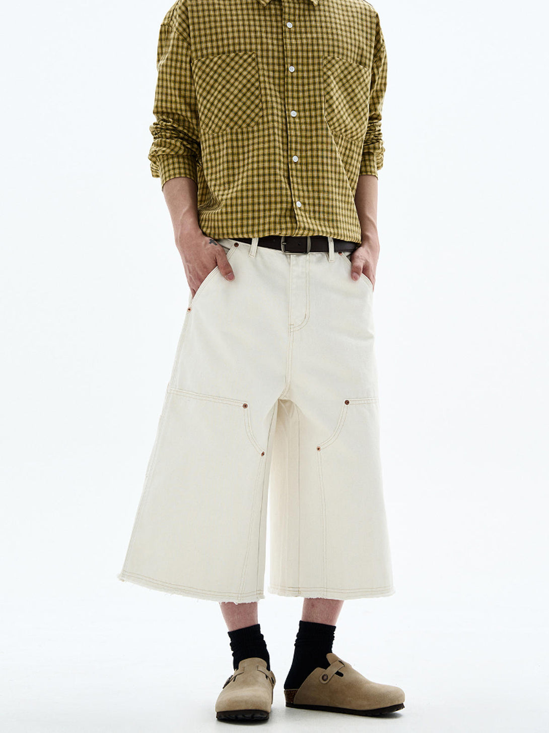 Clean cream-wash denim meets minimalist eyelet detailing in a cropped wide-leg construction built for effortless summer expression. The strategically placed metal eyelets add subtle texture while enhancing breathability, with the relaxed silhouette and premium cotton blend delivering all-day comfort from beach to city.