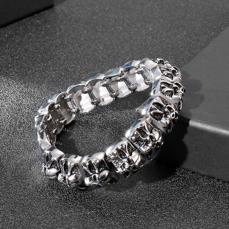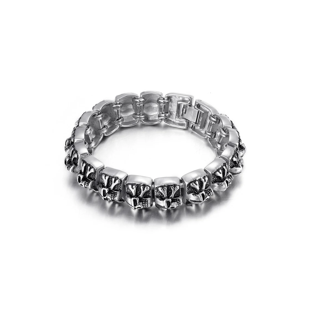 - Bold Skull Design: Striking skull link bracelet for a rebellious, punk-inspired look.