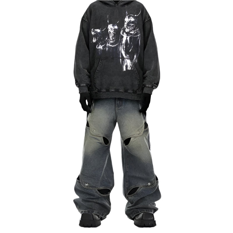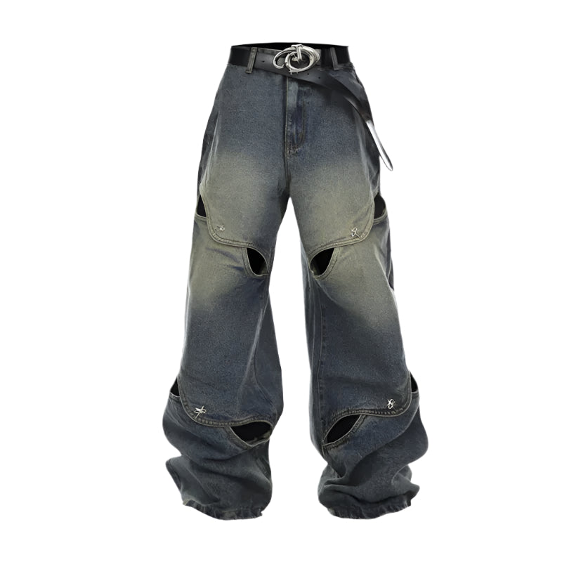 Product information: Cutout Wide Leg Jeans - Distressed Wash