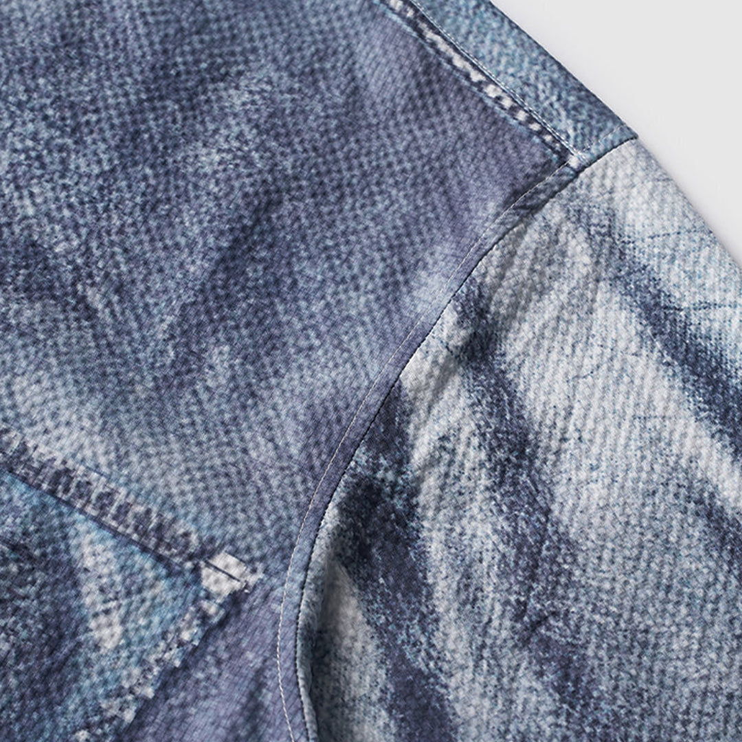 Our Digital Denim Print Shirt is built from lightweight polyester with photorealistic denim printing designed to deliver authentic vintage aesthetics without the weight and restrictions of traditional denim. The oversized construction and classic button-down silhouette create contemporary streetwear proportions, while our advanced digital printing process captures every detail of aged denim texture for an incredibly realistic finish. Turn-down collar and extended proportions deliver pieces that merge heritage denim culture with modern comfort innovation.