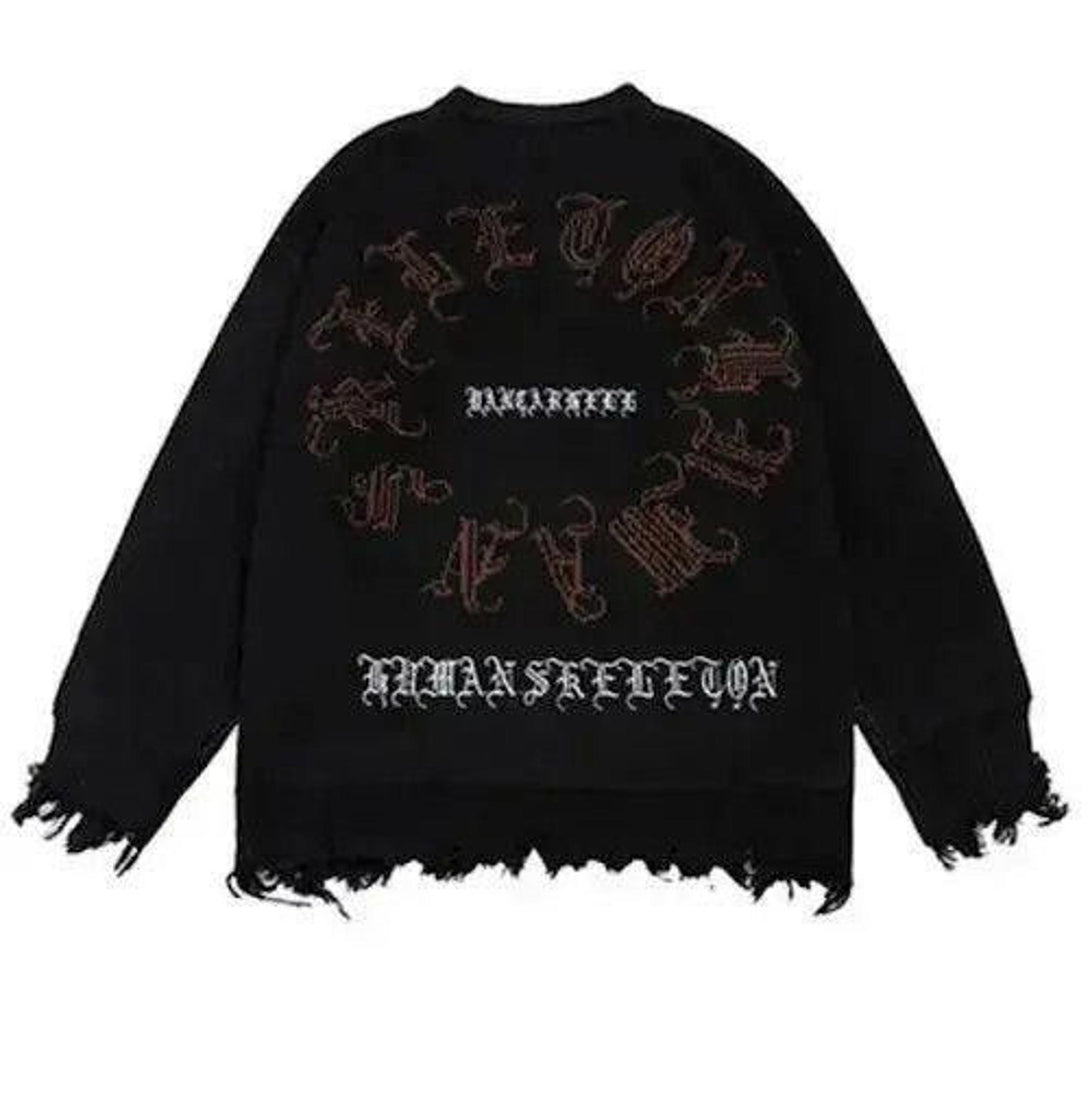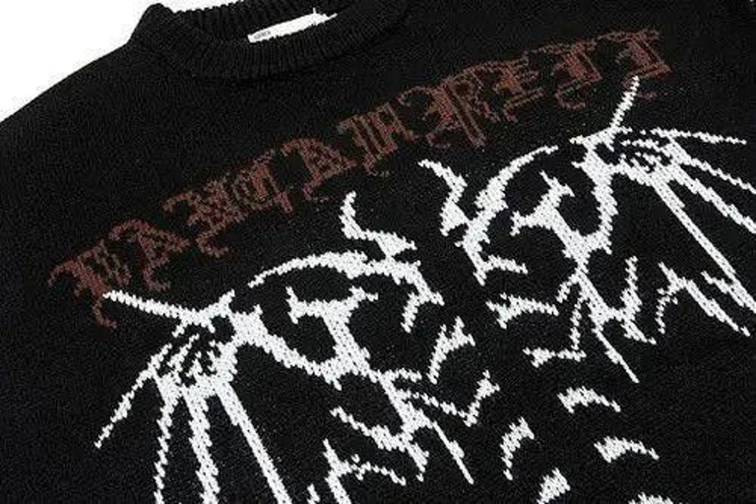 Distressed Gothic Skeleton Print Knitwear