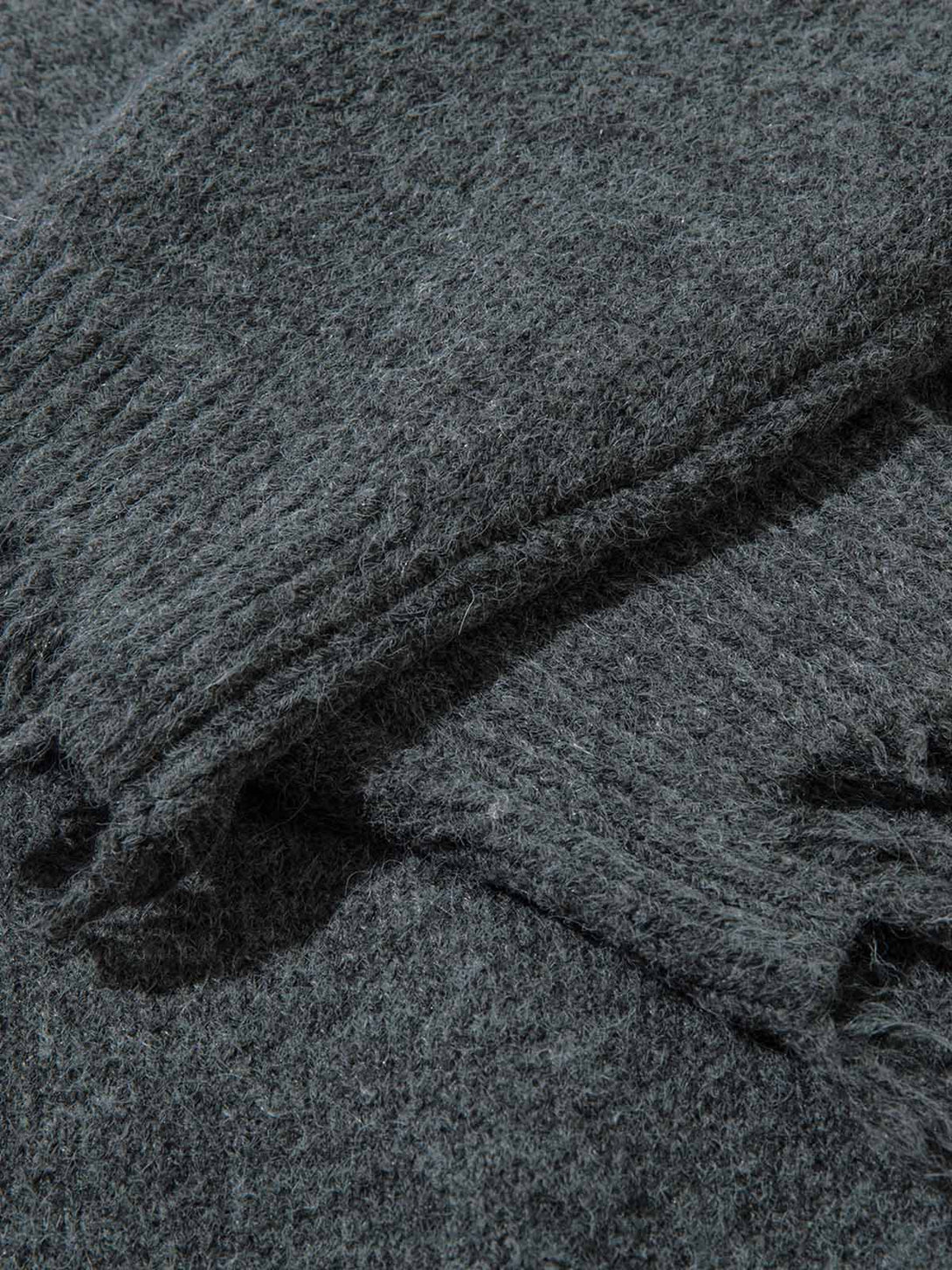 - Construction: Jacquard knit technique with hand-finished distressed edges