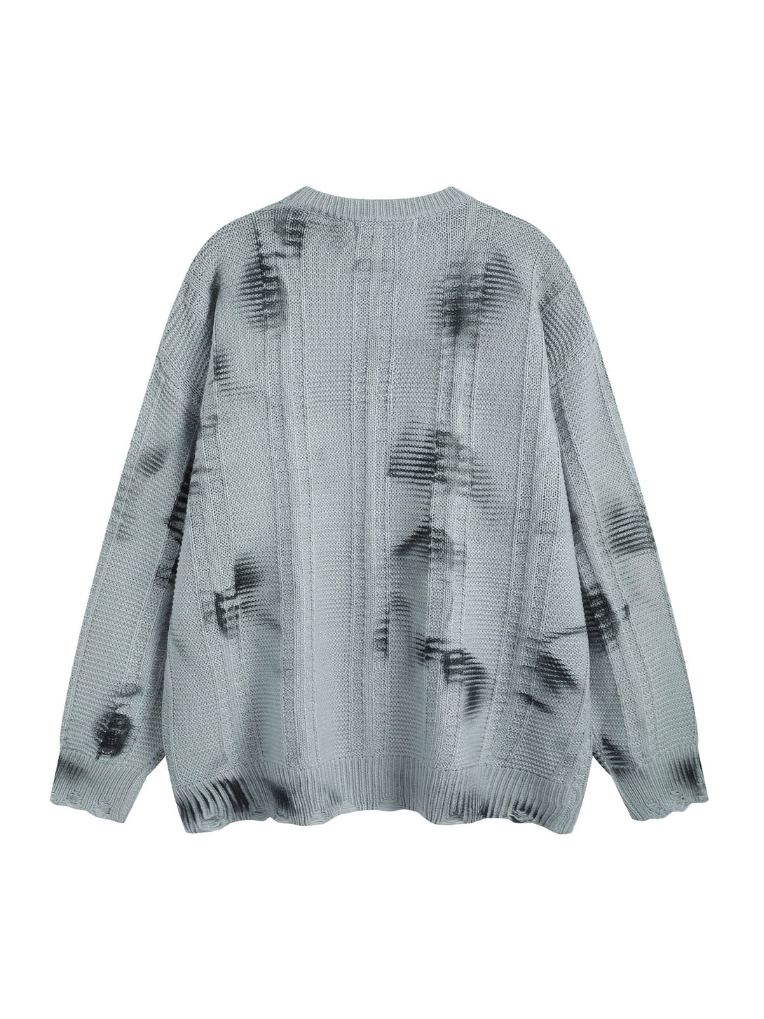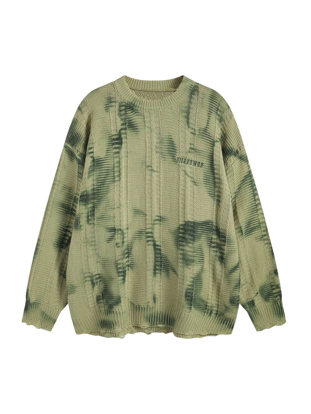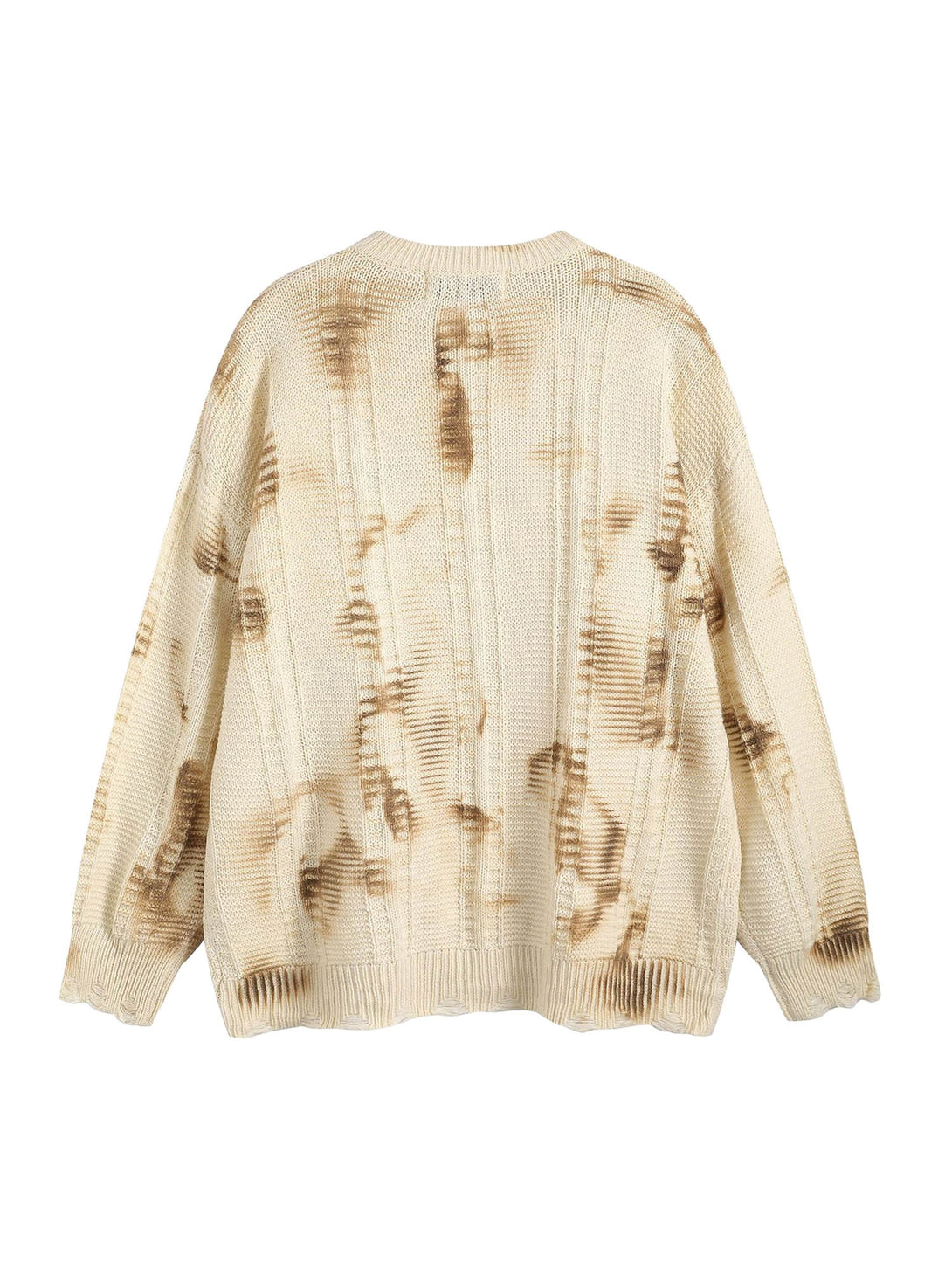 Our signature oversized knit sweater features hand-applied vintage wash effects that create authentic distressed patterns across the entire garment. Built from premium 100% acrylic fiber with relaxed construction designed for ultimate comfort and post-apocalyptic street style. The tie-dye inspired wash treatment uses specialized distressing techniques, while the oversized fit ensures effortless layering and contemporary streetwear appeal.