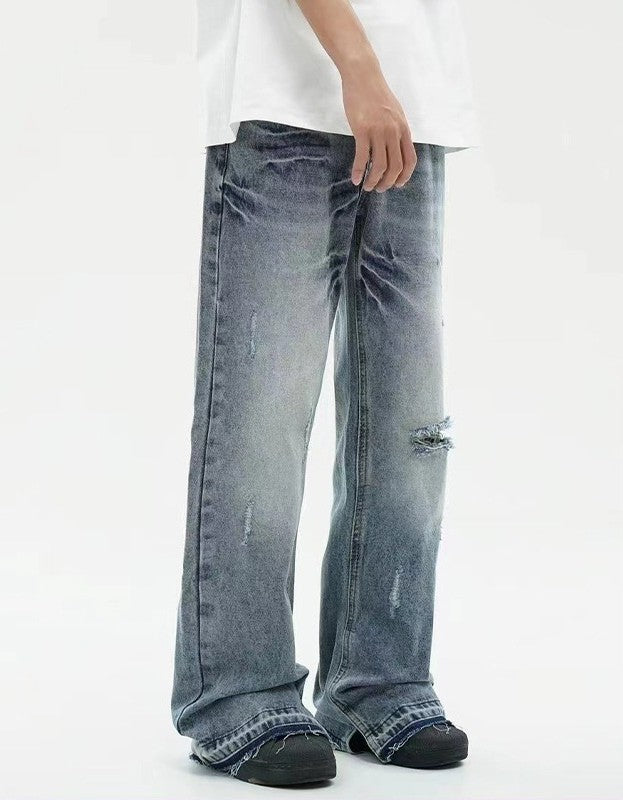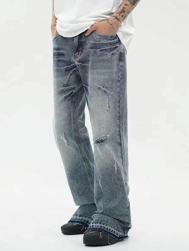 Product information: Distressed Wide-Leg Jeans - Mid-Waist Vintage Flare Pants