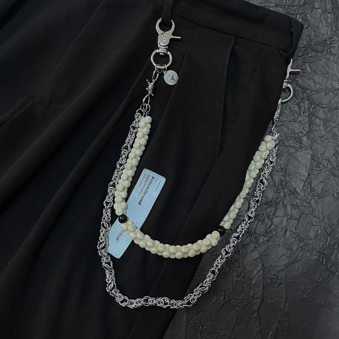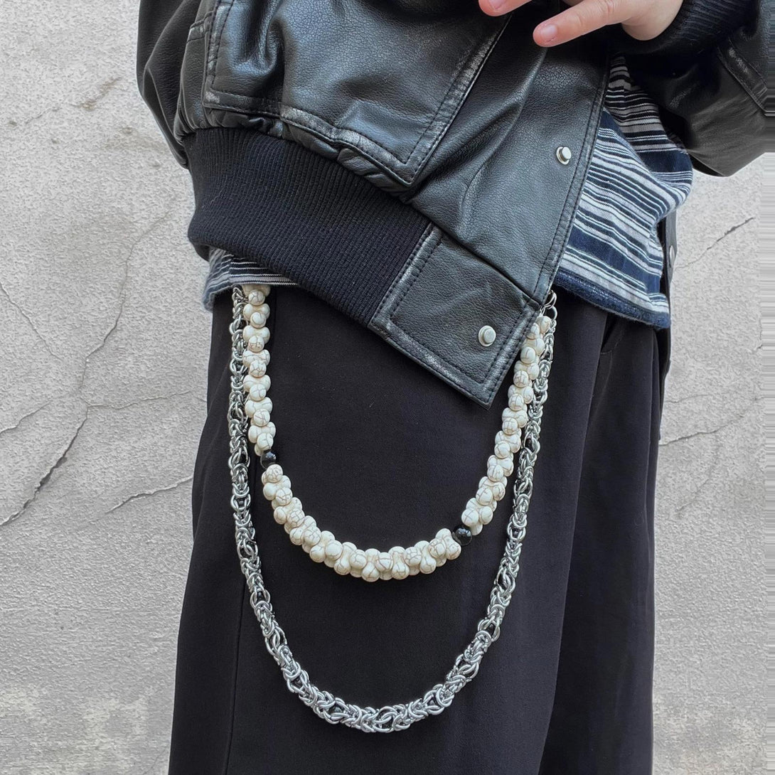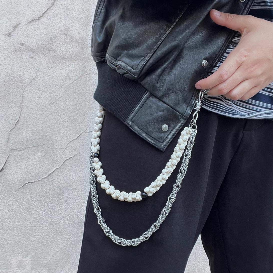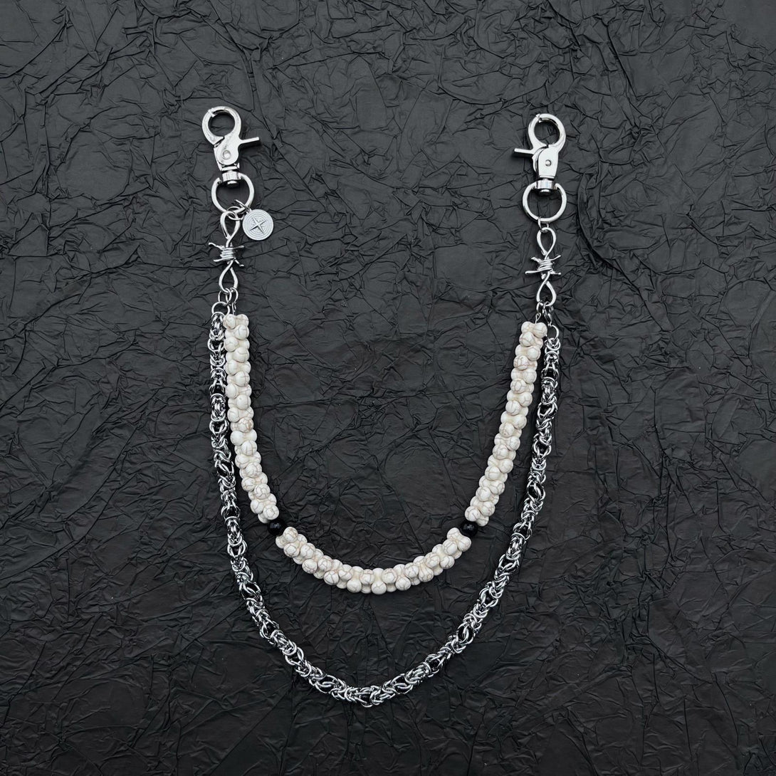 Double Layered Steel Gemstone White Turquoise Wallet Chain