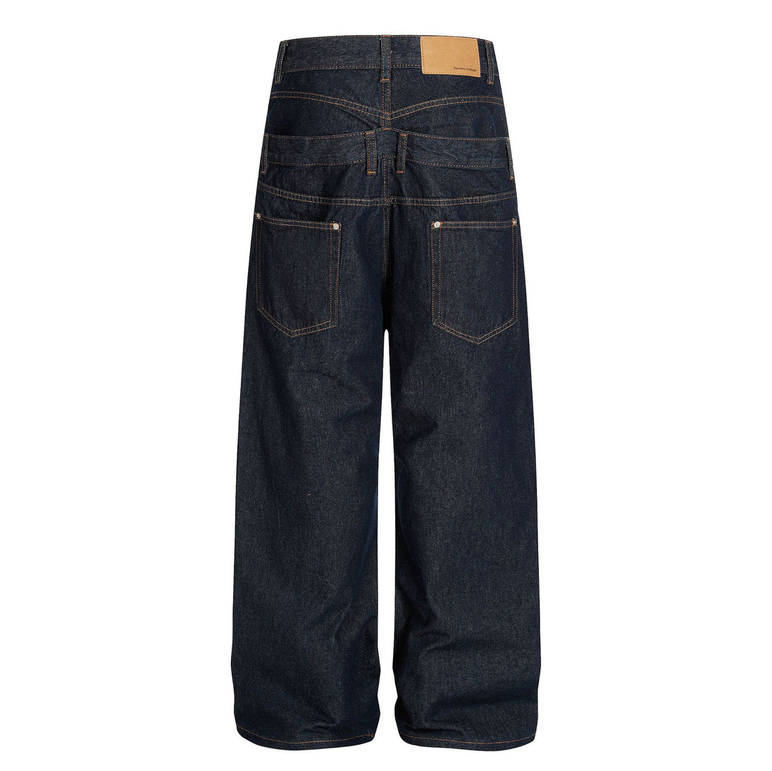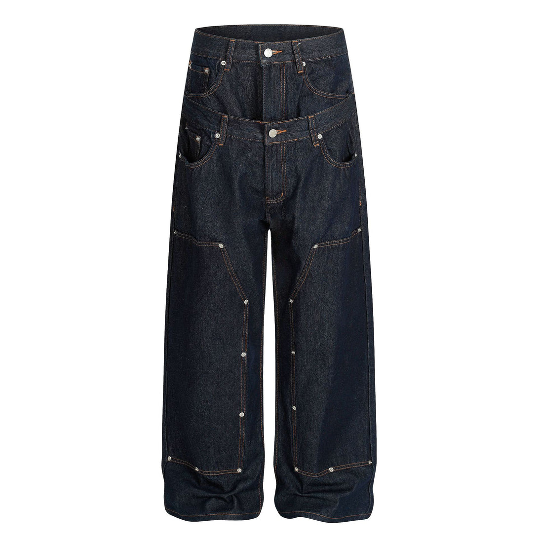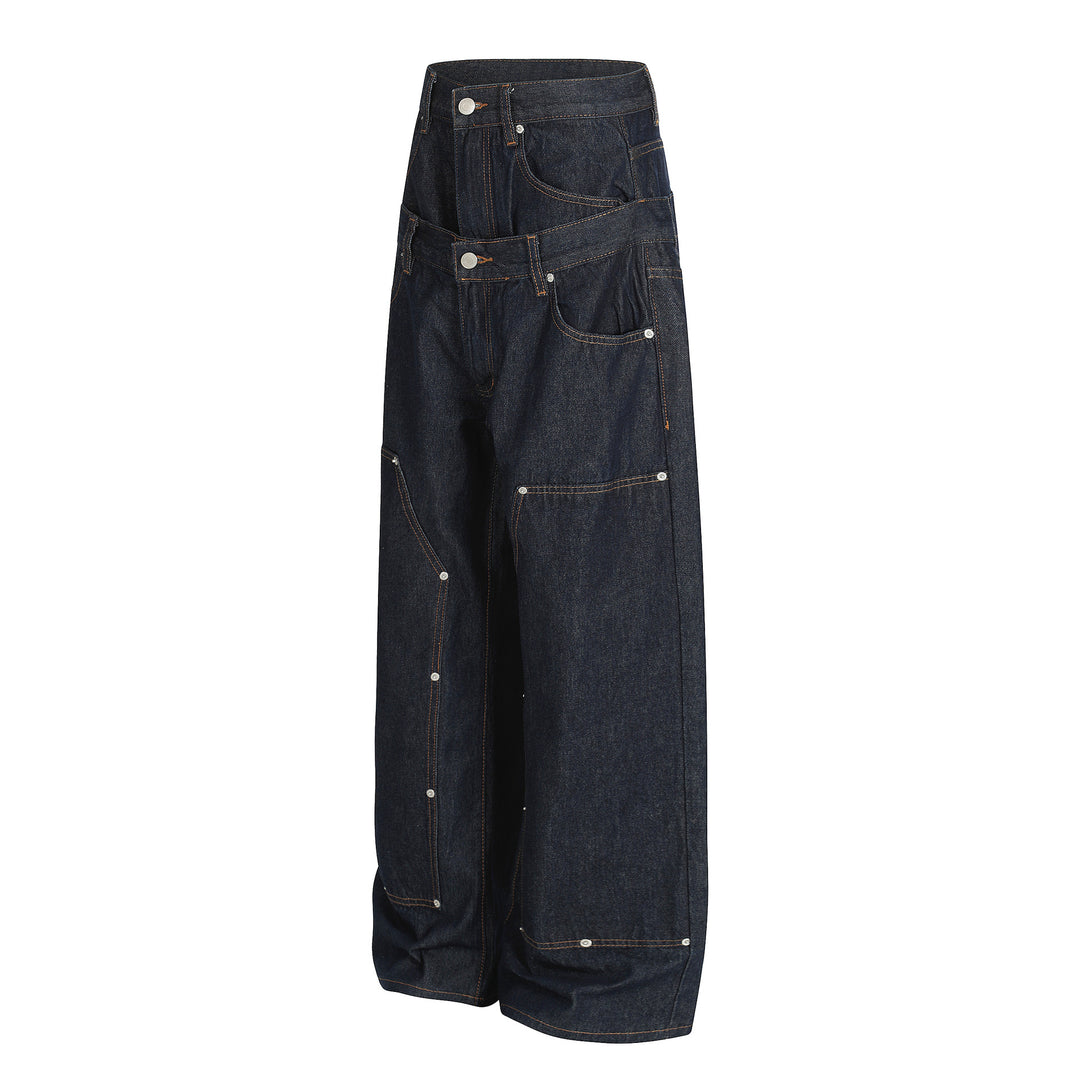 Double-Waist Loose Deconstructed Stud Wide Leg Raw Denim Jeans