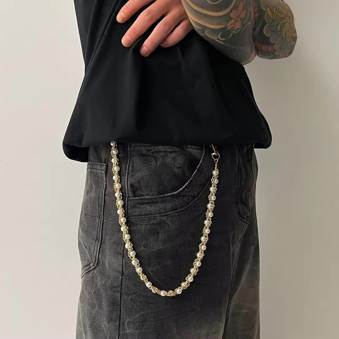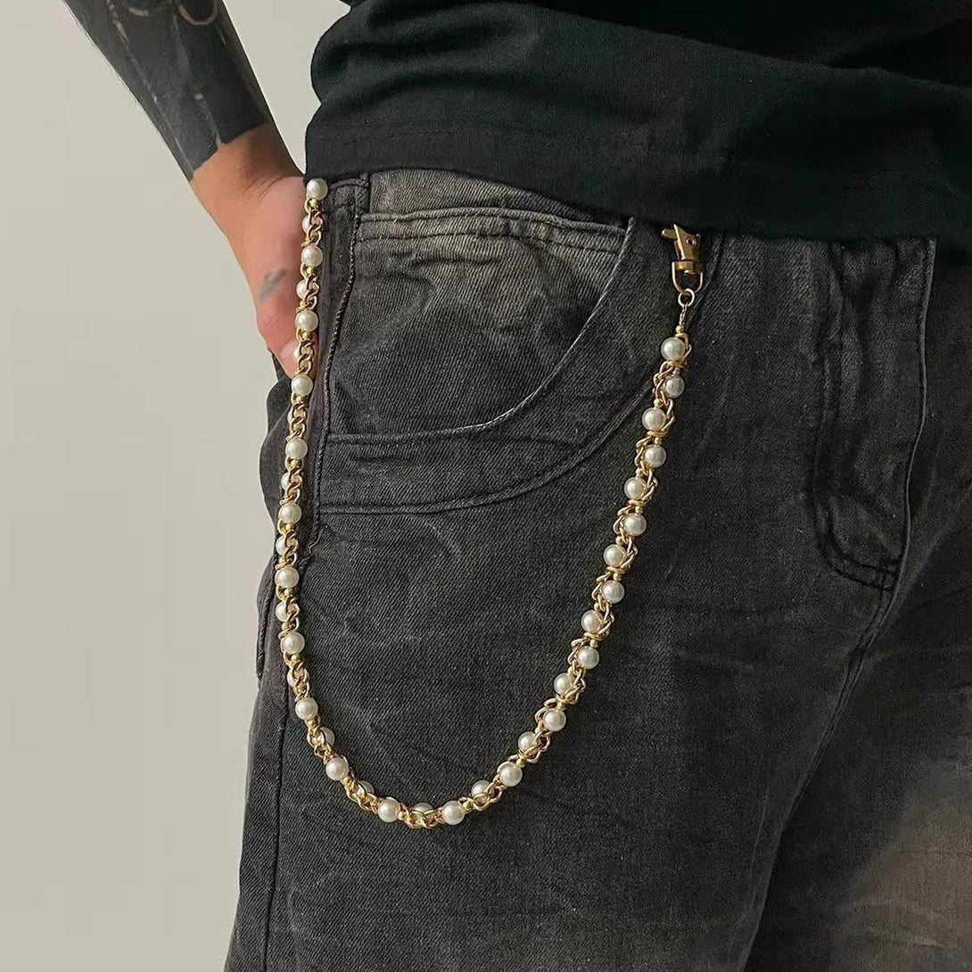Gold Pearl Twist Wallet Chain