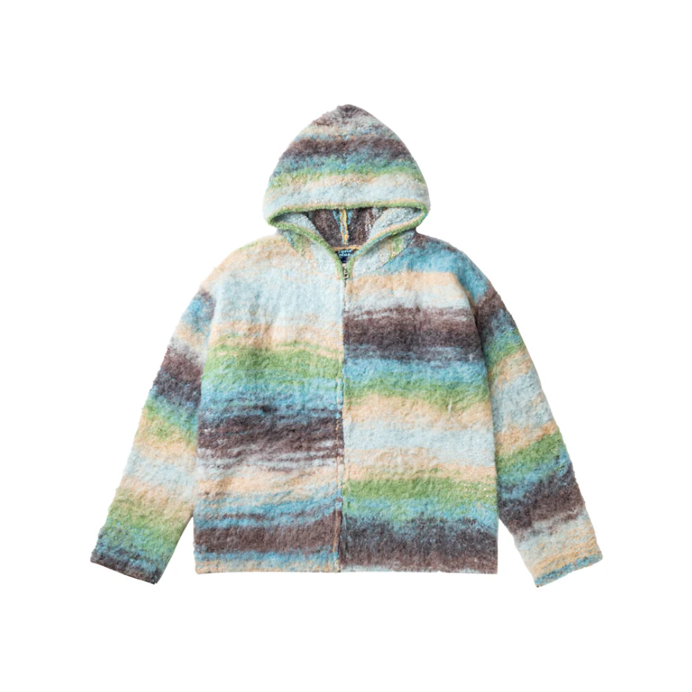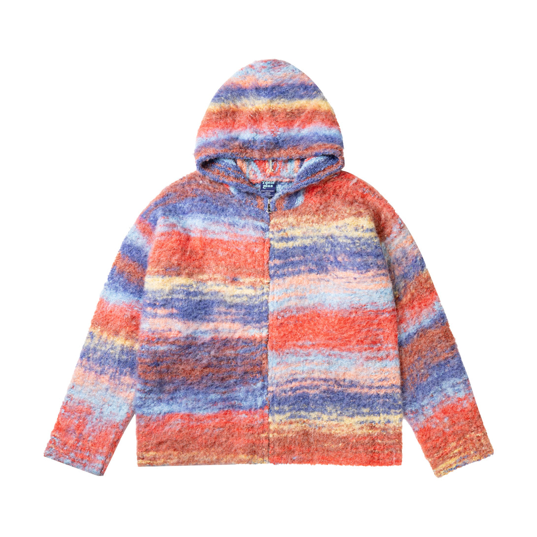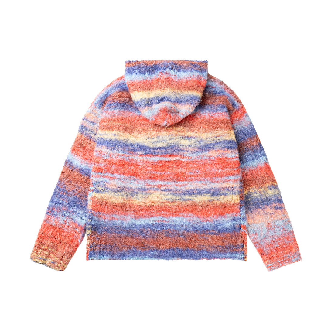 The precision gradient engineering transforms each hoodie into wearable landscape art that celebrates the intersection of technical knit innovation and natural beauty inspiration. The fuzzy texture adds tactile dimension that enhances both visual impact and comfort experience.