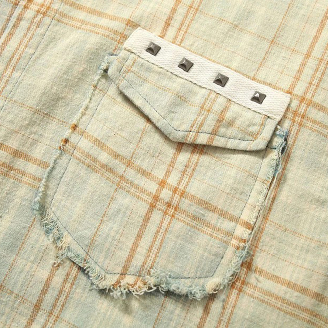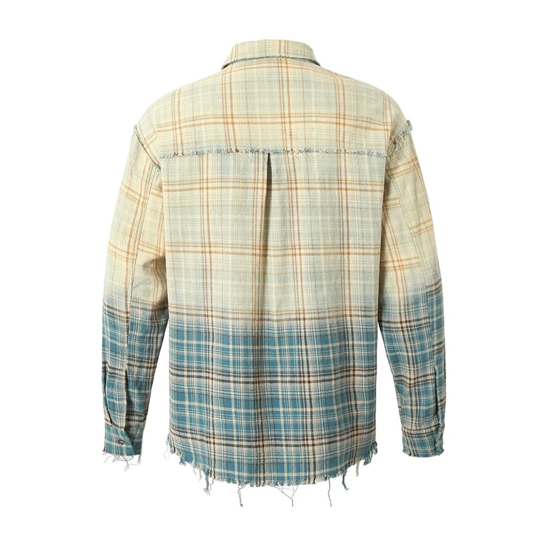Gradient Plaid Frayed Long Sleeve Shirt
