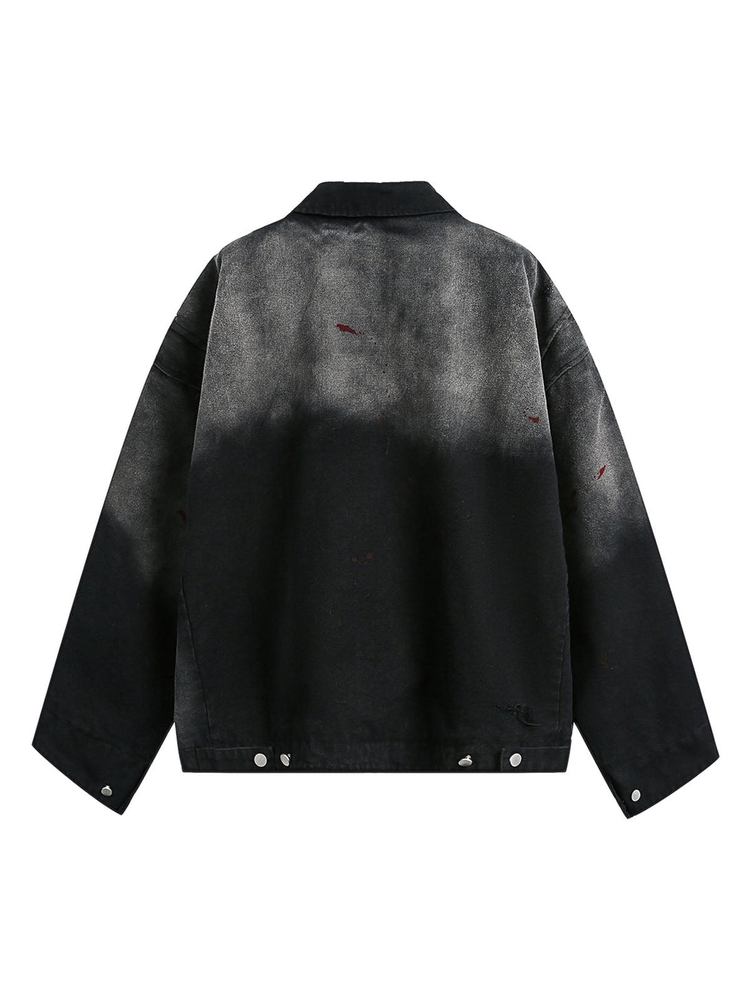 Our Gradient Wash Paint Jacket is built from cotton blend with multi-stage wash treatment and paint splatter detailing designed for authentic vintage character and urban durability. The cropped bomber silhouette features gradient fade effects that transition from deep black to charcoal gray, while strategic paint accents and distressed finishing create lived-in authenticity. The cotton blend construction ensures shape retention and easy care, while the cropped length provides contemporary proportions for modern streetwear styling.