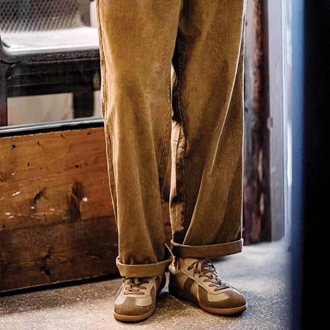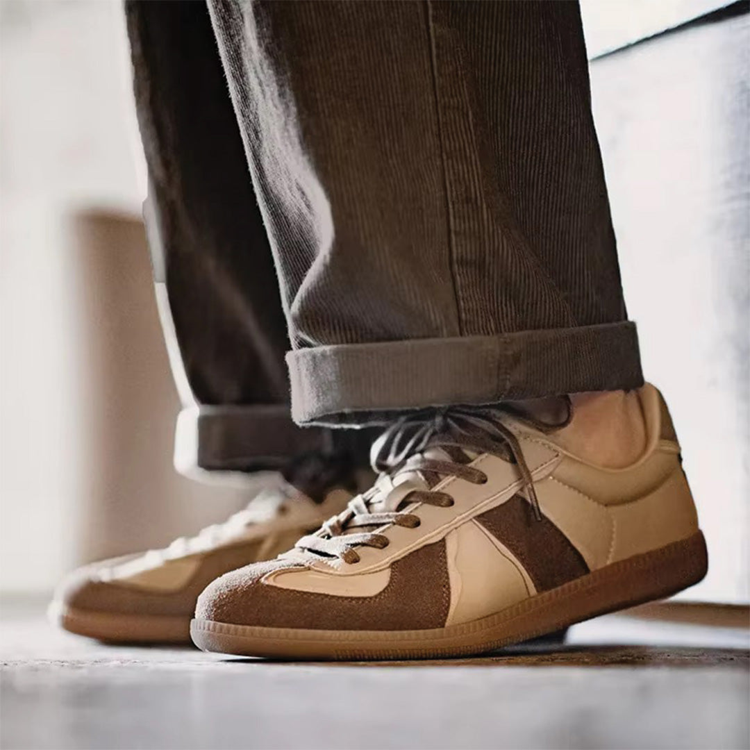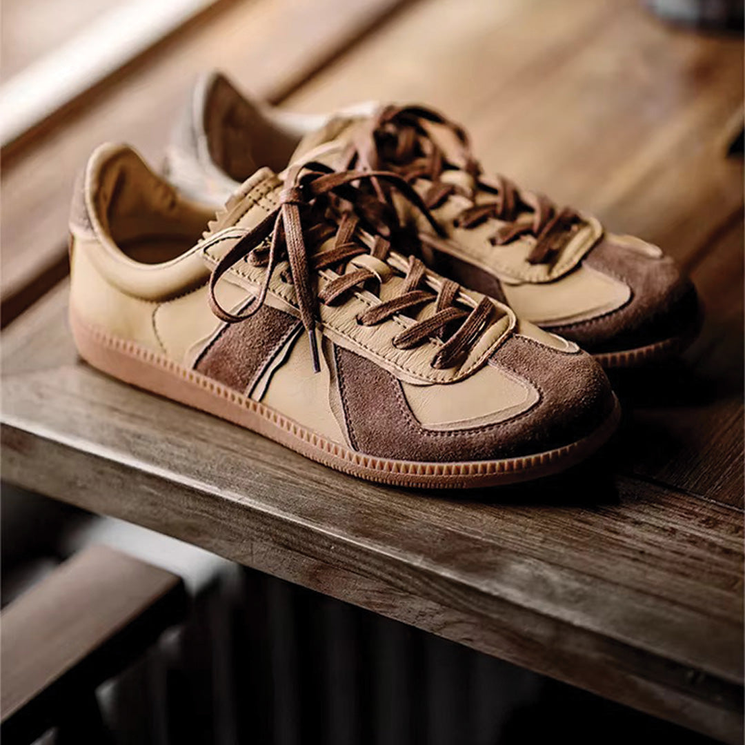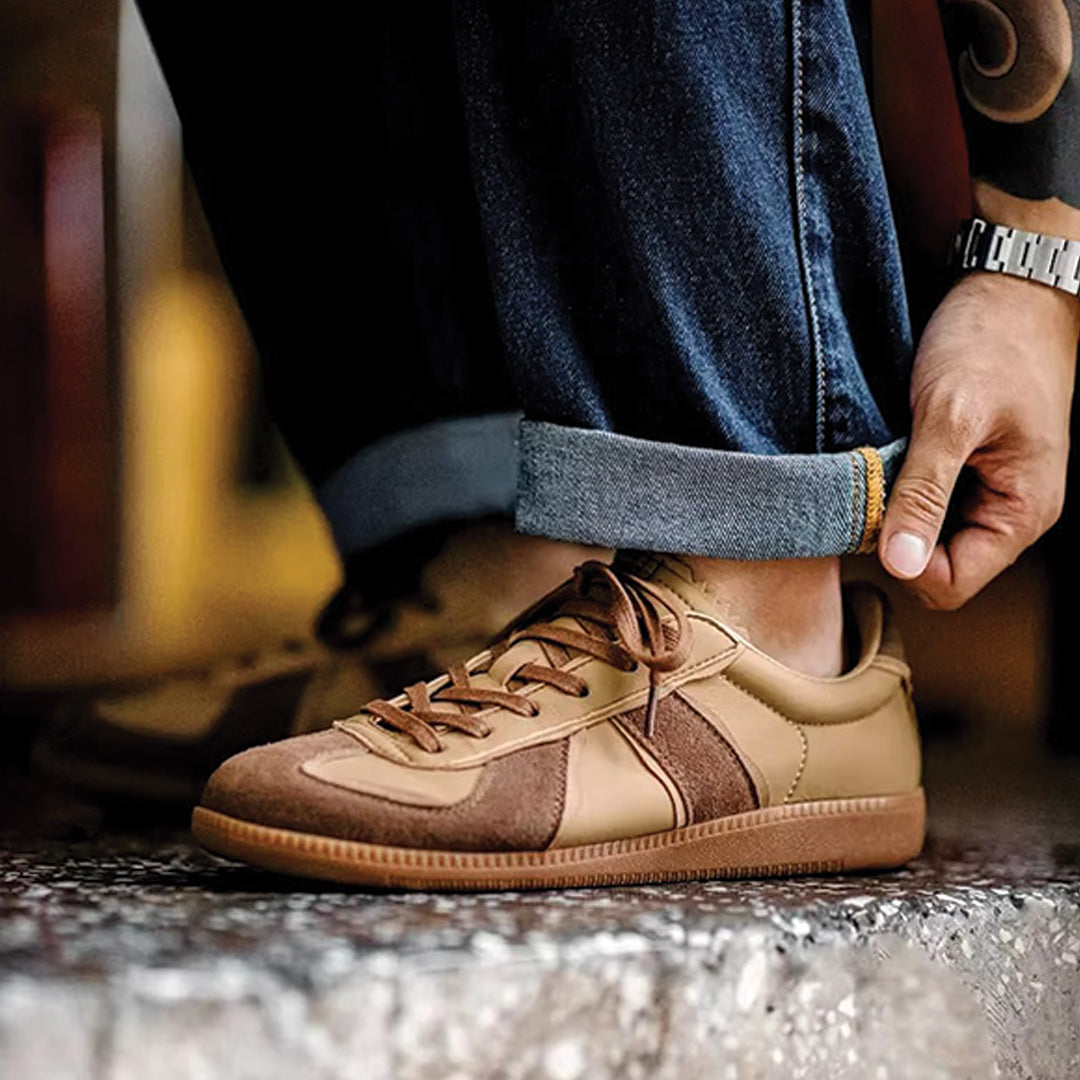 Crafted with meticulous attention to detail, these German Army Trainer style shoes offer a harmonious balance of heritage and modern craftsmanship. Handmade in vegan brown leather, 100% wool, organic detailing, they are the perfect understated choice for those who value both quality and style.
