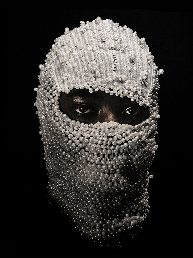 - Artistic Elements: Anonymous portrait artwork celebrates the intersection of street culture and luxury embellishment techniques