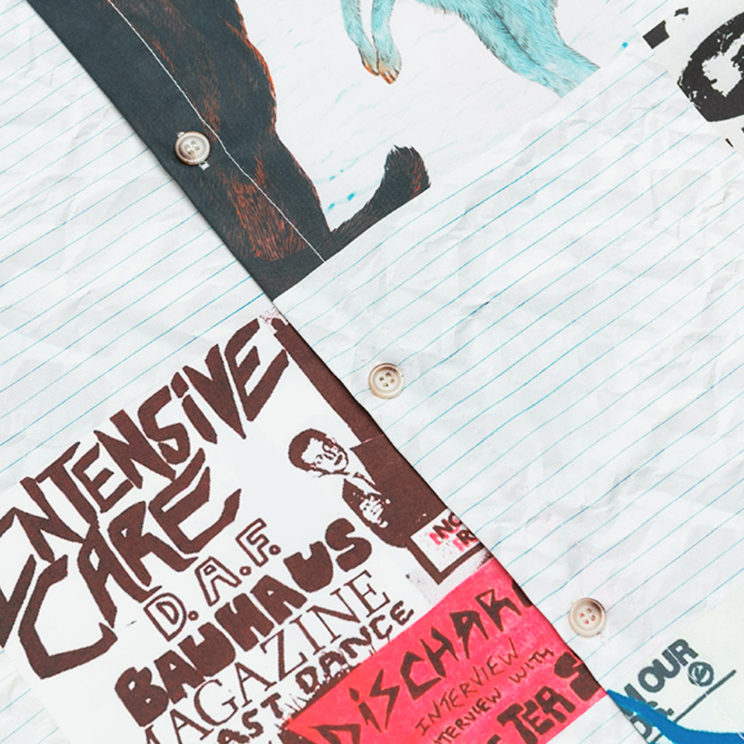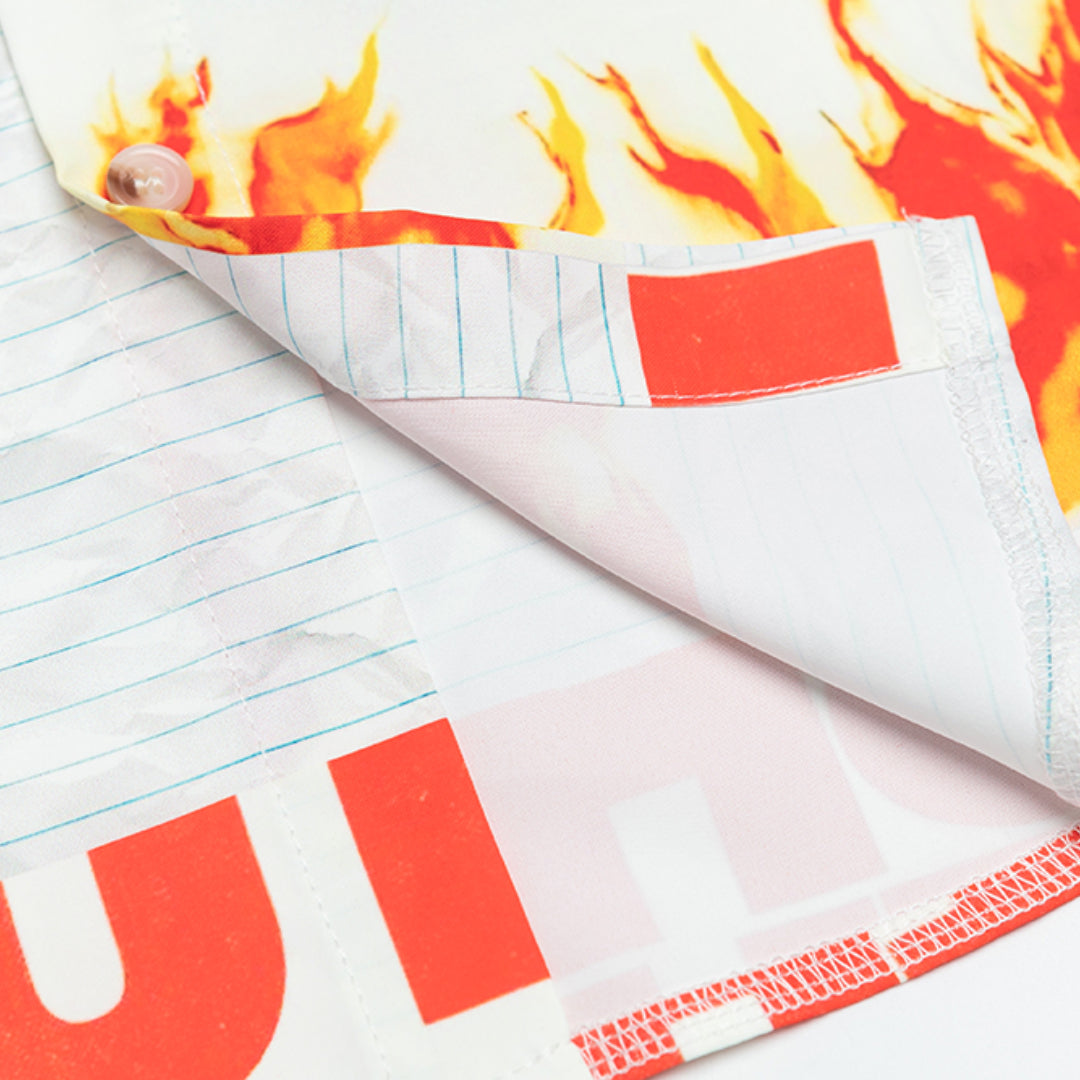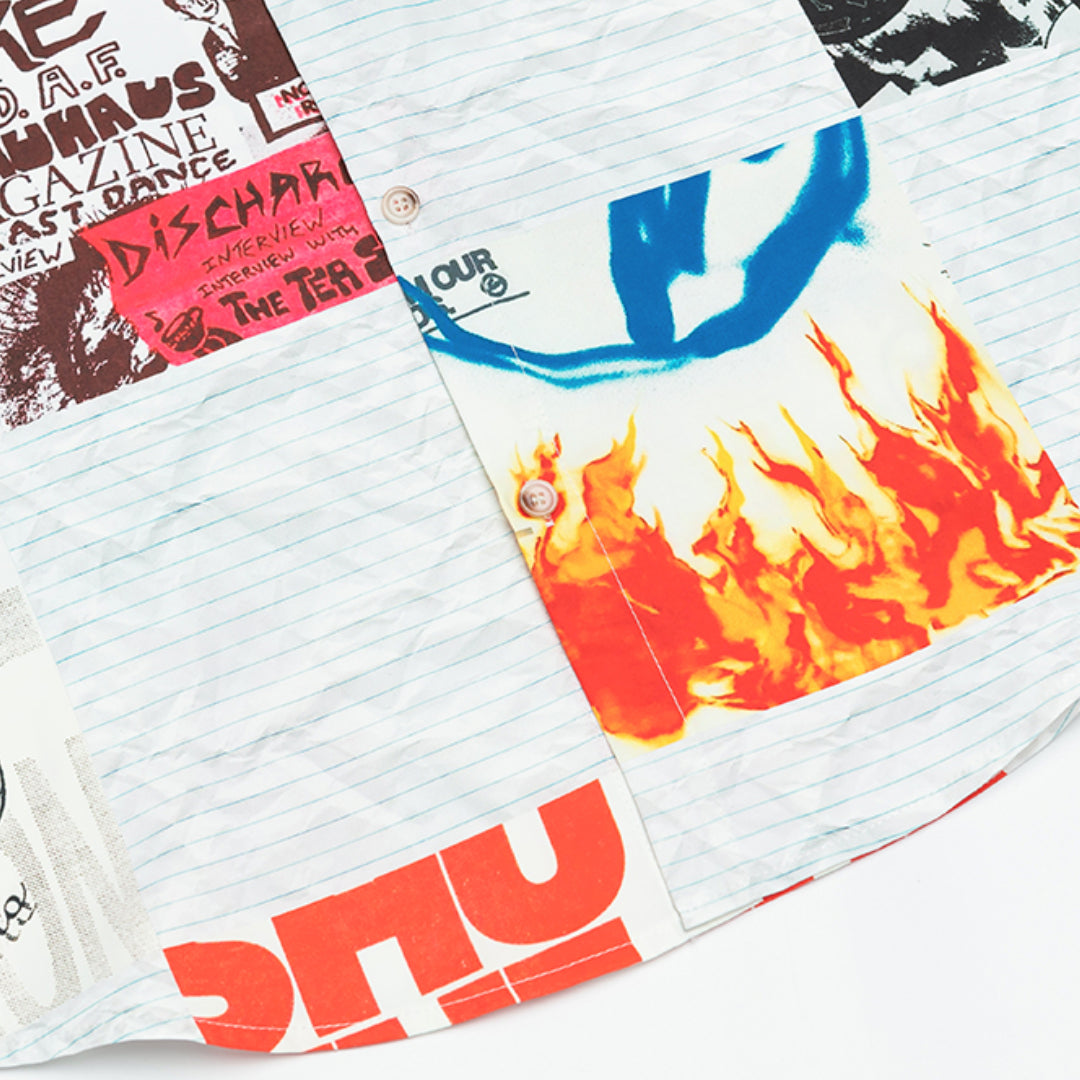 Our Patchwork Art Short Sleeve Shirt is built from cotton-polyester blend with lined paper printing and underground culture graphics designed to celebrate DIY creativity and analog nostalgia. The loose construction and classic turn-down collar create comfortable proportions, while our collage printing process layers authentic zine imagery, music references, and student culture artifacts across a realistic notebook paper foundation. Academic rebellion aesthetics and underground art references create pieces that honor creative authenticity over commercial polish.