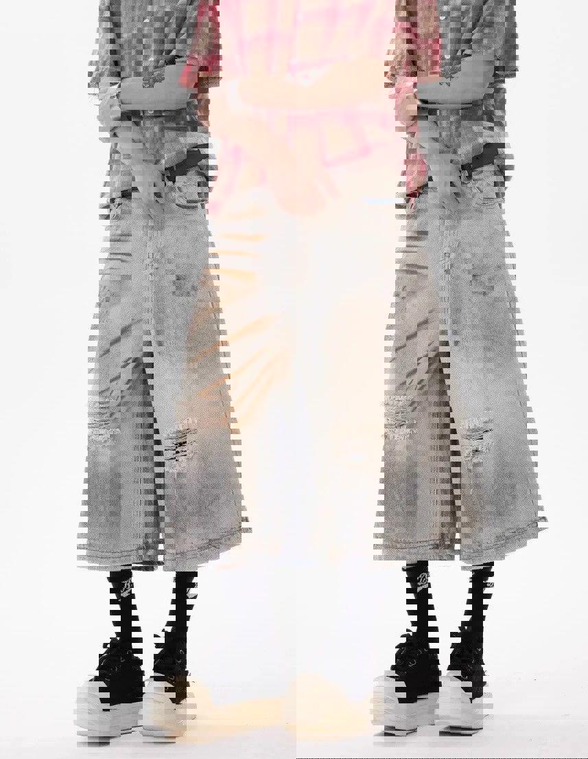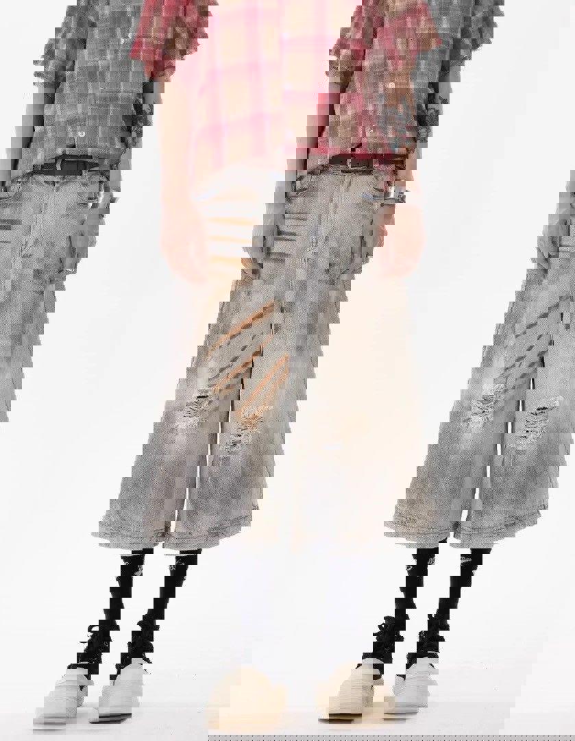 Our Post-Apocalyptic Wash Denim Shorts are built with premium cotton-blend denim and intensive multi-stage distressing designed for those who appreciate dystopian aesthetics with contemporary edge. The complex chemical wash treatment creates authentic wasteland character through strategic color bleeding and controlled degradation effects, while the wide-leg construction and mid-rise fit adapt seamlessly from statement streetwear looks to festival adventures. Advanced distressing techniques and reinforced construction ensure this apocalyptic-inspired piece maintains its dramatic visual impact and structural integrity through countless urban explorations.