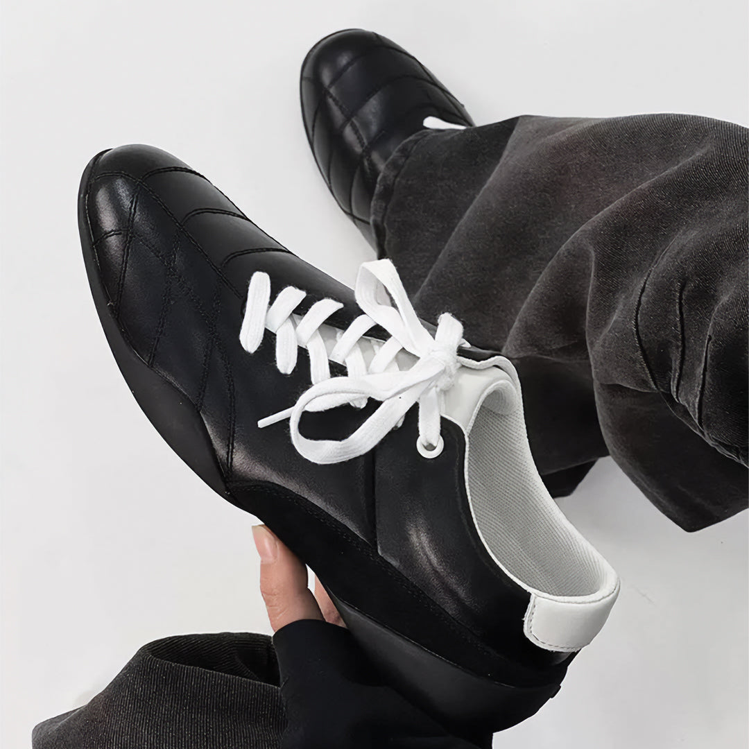 Segmented genuine leather construction meets precision-stitched quilted detailing across sport-heritage silhouettes, merging soccer-inspired craftsmanship with contemporary street functionality. The strategic panel placement delivers visual texture while contrast white lacing and heel accents transform classic athletic aesthetics into versatile daily essentials that bridge sport heritage with modern urban styling.