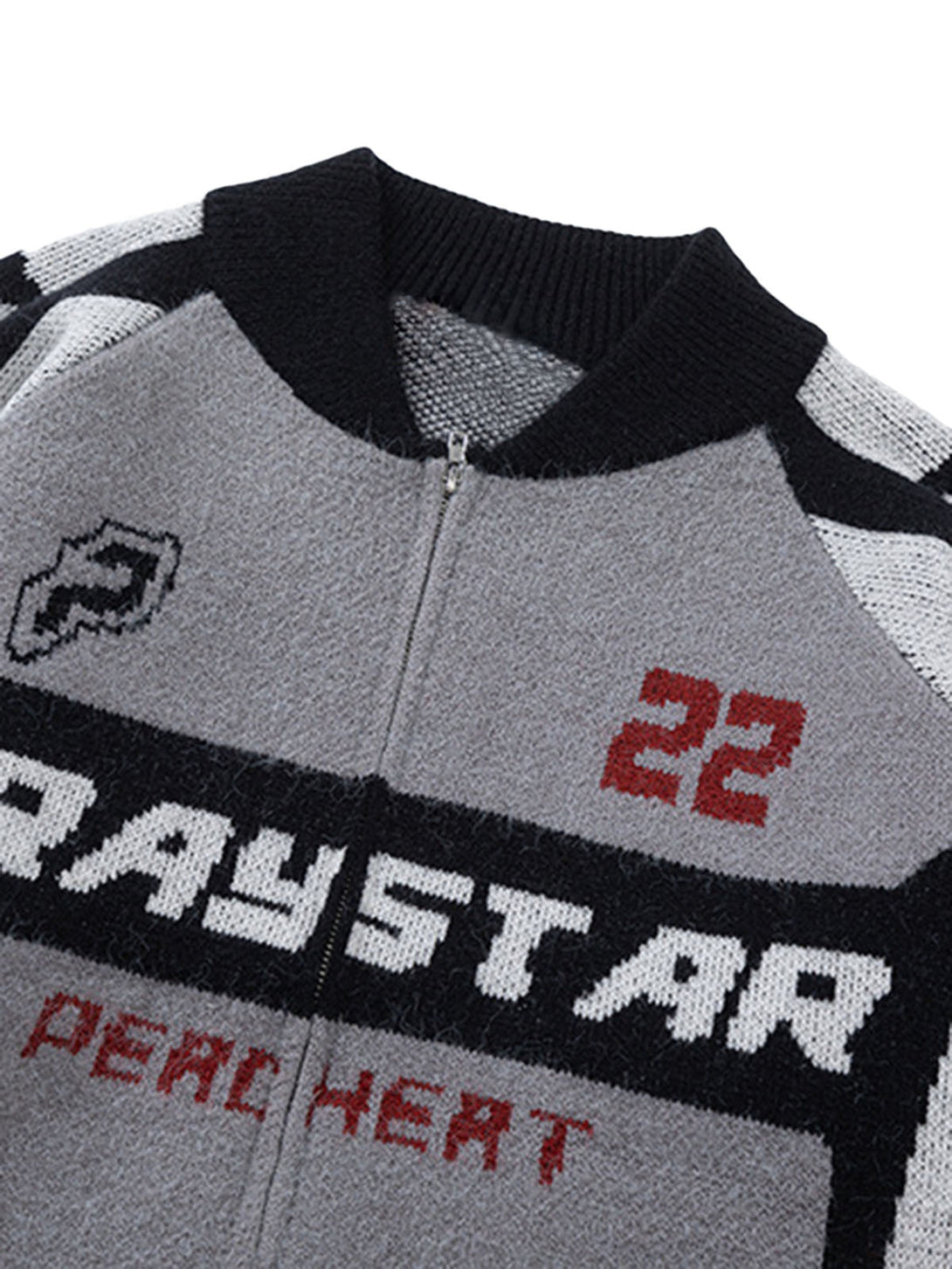 Our motorsport-inspired zip cardigan is built from 52% acrylic fiber blend with precision color-blocking designed for athletic heritage expression and daily versatility. The V-neck collar construction and contrast panel placement create dynamic visual movement while maintaining structured comfort, while the racing graphics and number details develop authentic competition character that celebrates speed culture through everyday wear. Full-zip functionality, ribbed trim finishing, and high color-fastness treatment ensure reliable performance that transitions seamlessly from casual comfort to statement streetwear styling.