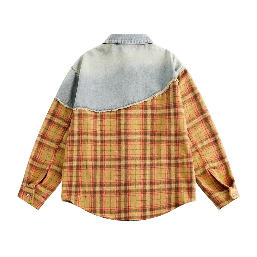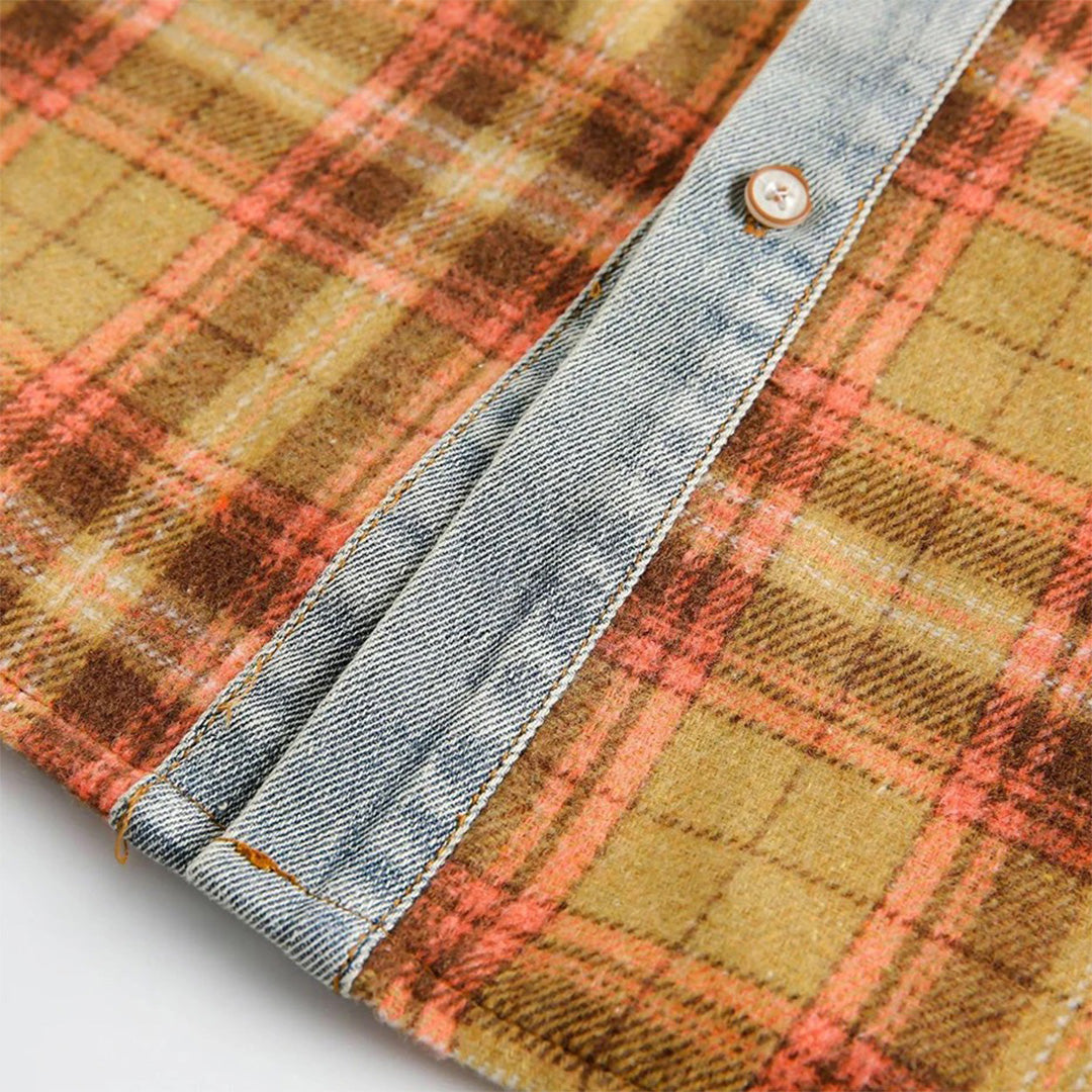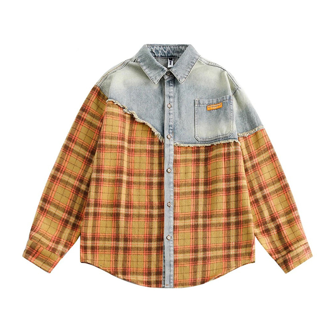 Reconstructed Denim-Plaid Hybrid Shirt