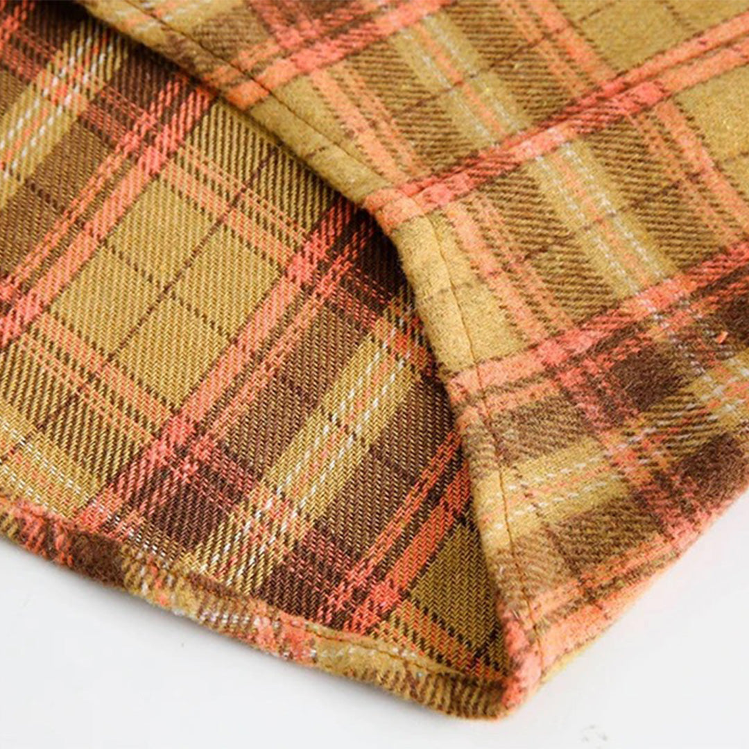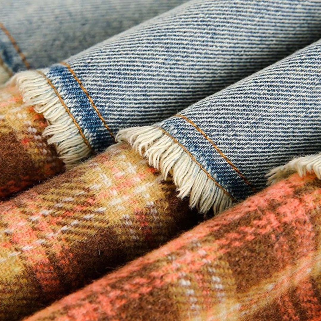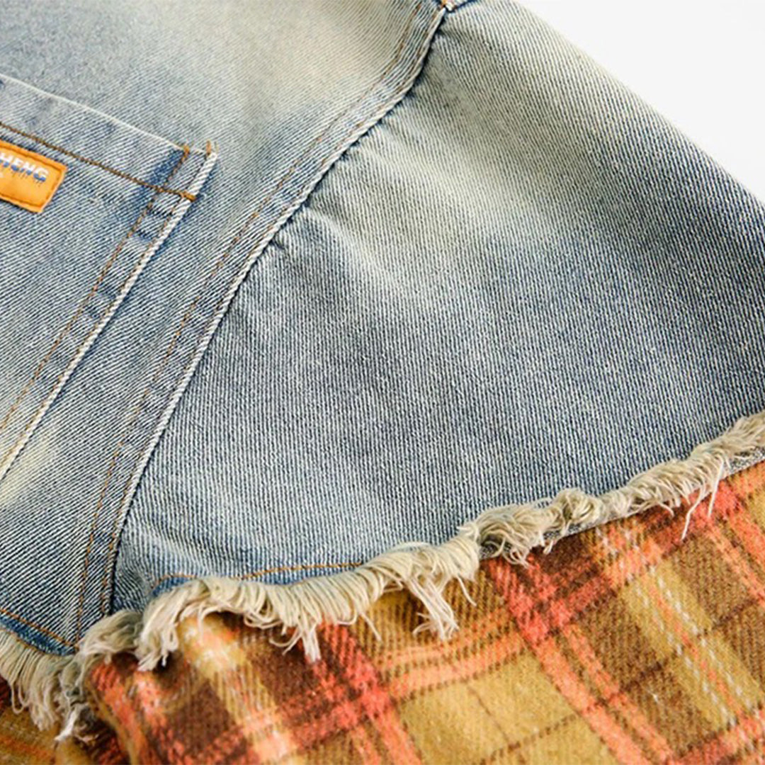 - Material: 100% premium cotton featuring vintage-wash denim and autumn tartan plaid