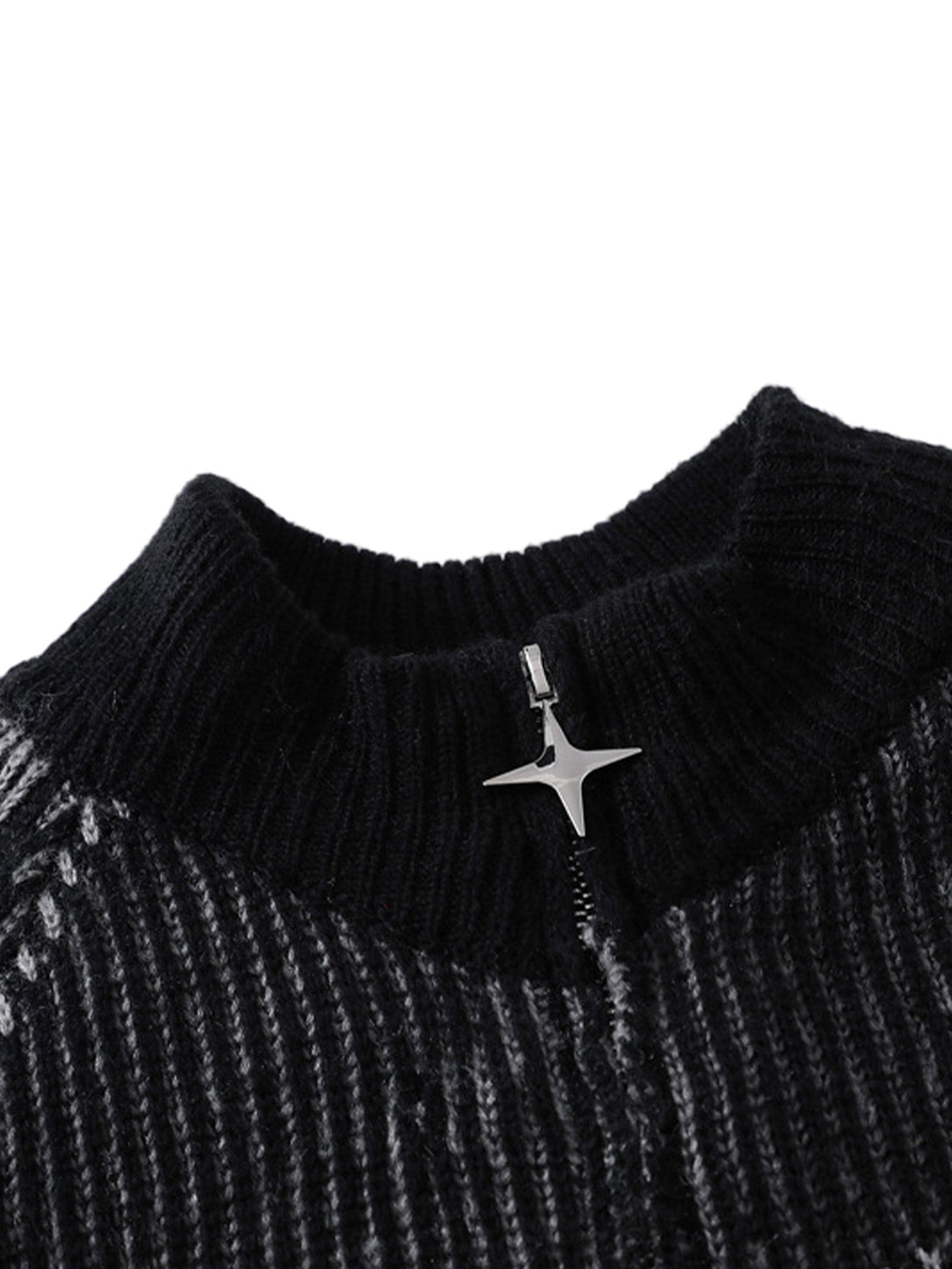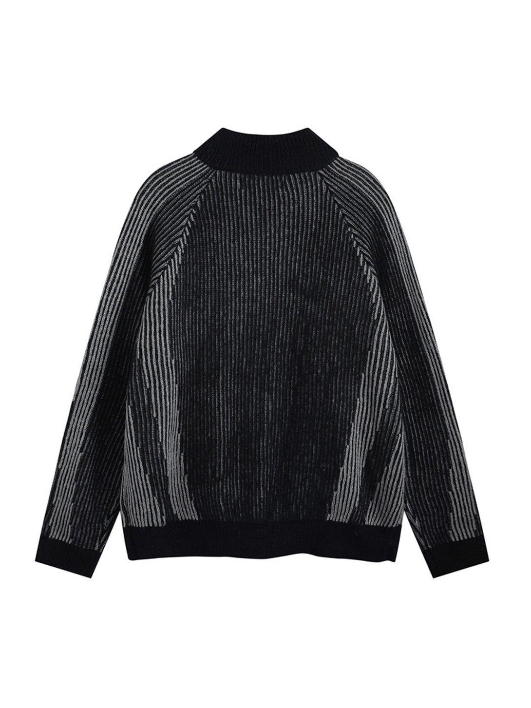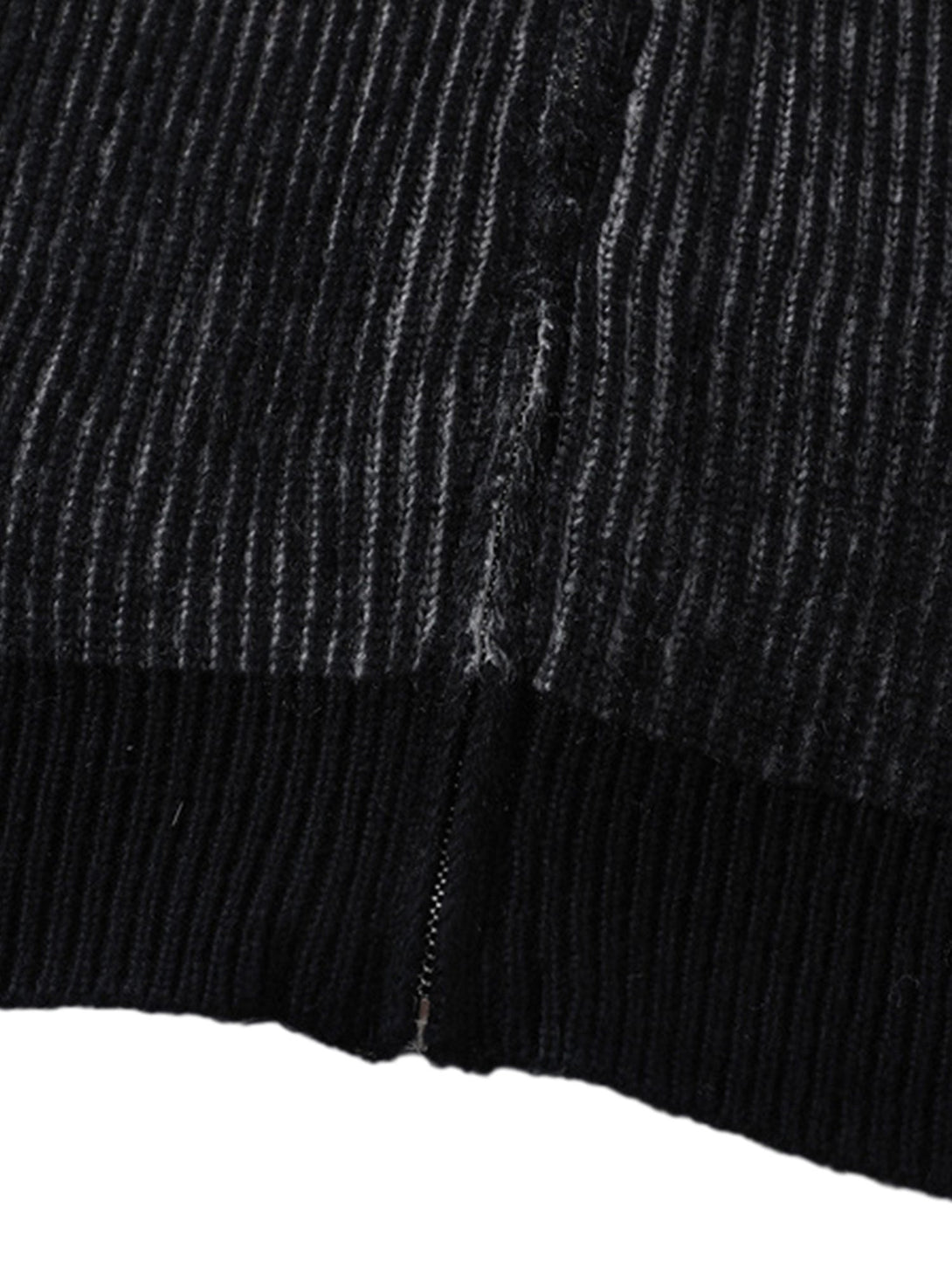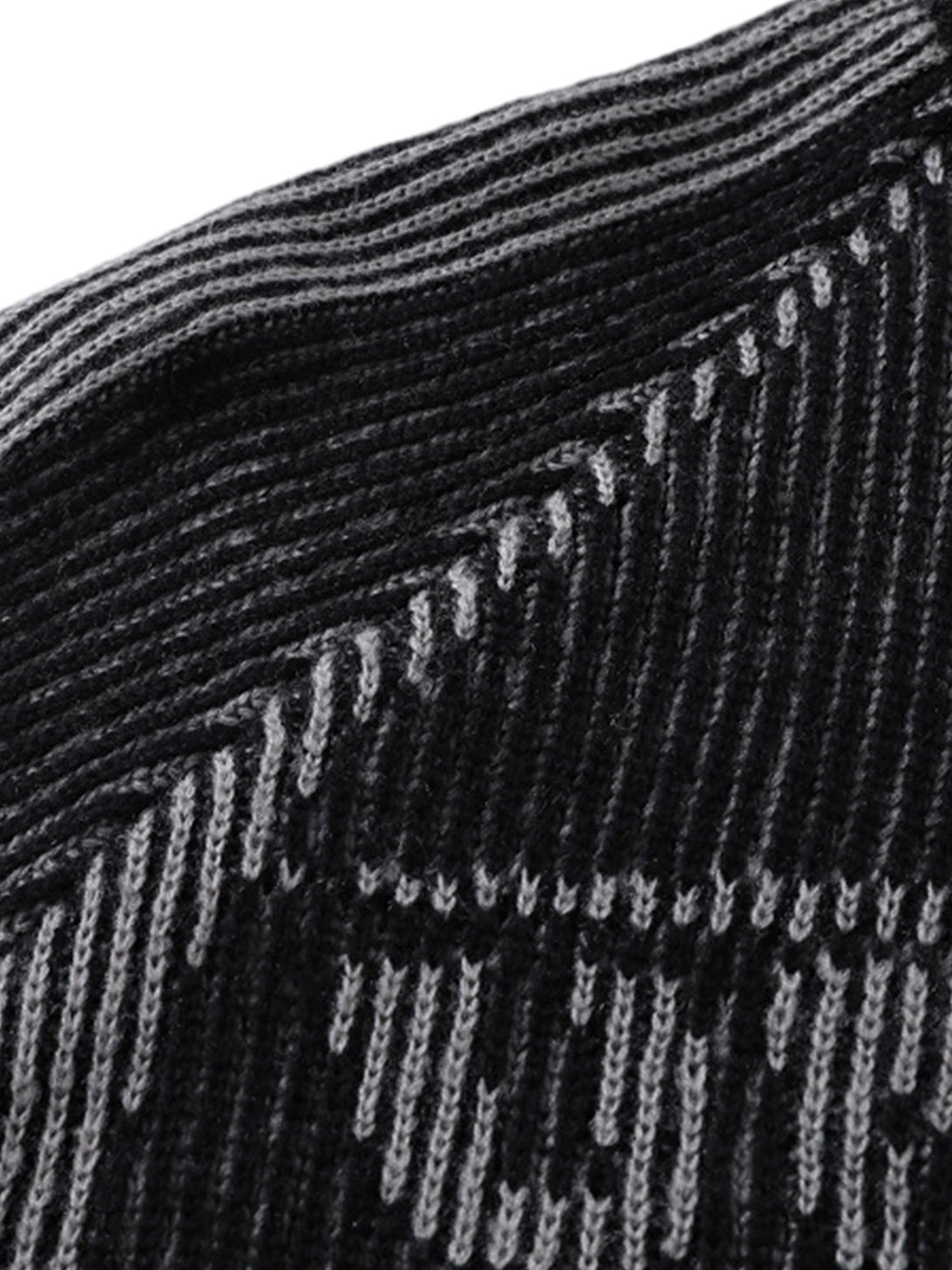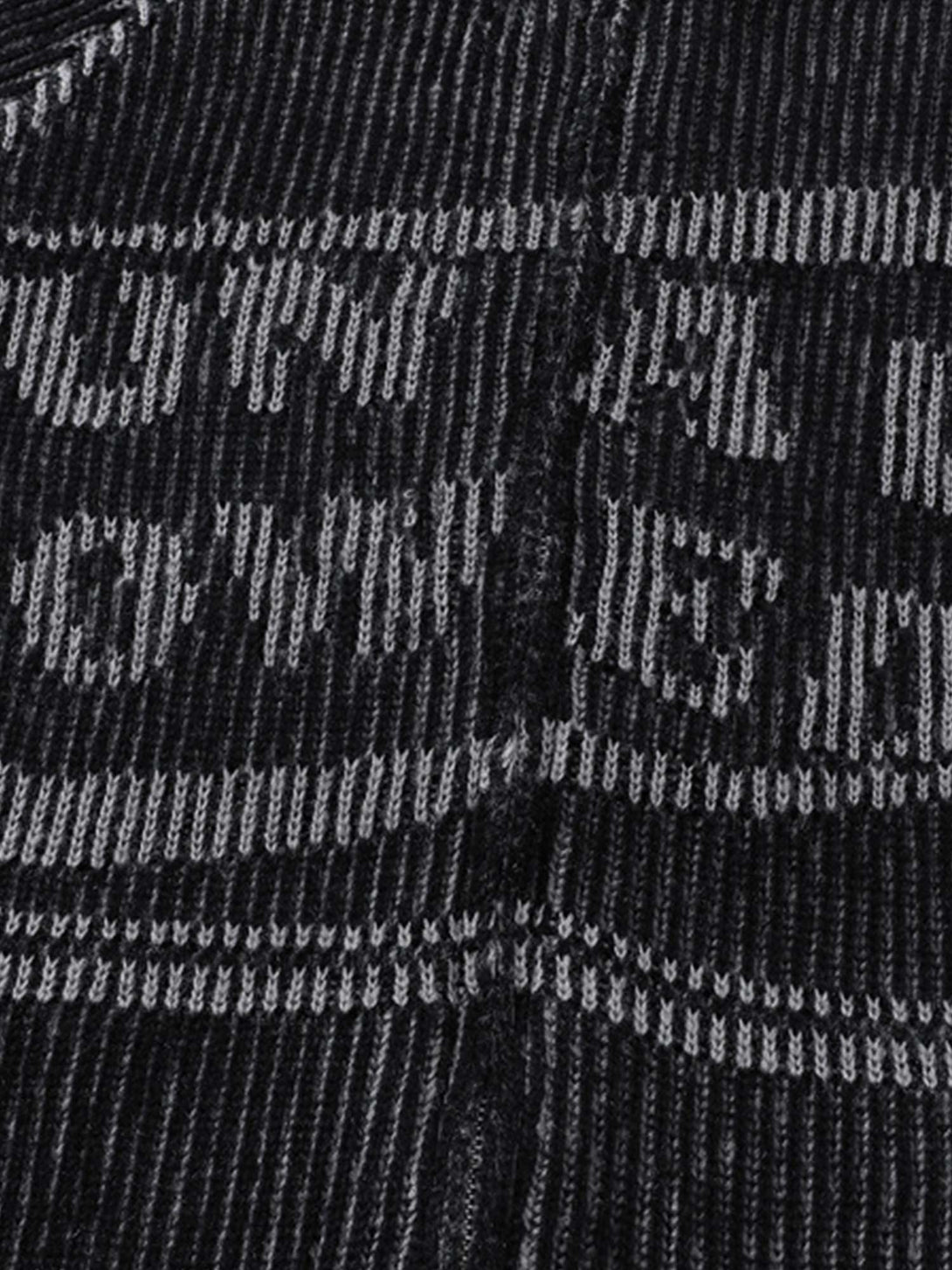 Our signature zip-up bomber cardigan features distinctive ribbed contrast striping that creates dynamic visual texture across the entire garment. Built from premium 100% acrylic fiber with specialized seahorse wool construction designed for superior warmth and structured drape. The oval text graphic uses advanced jacquard knitting techniques, while the bomber-style silhouette with ribbed collar, cuffs, and hem provides classic streetwear appeal.