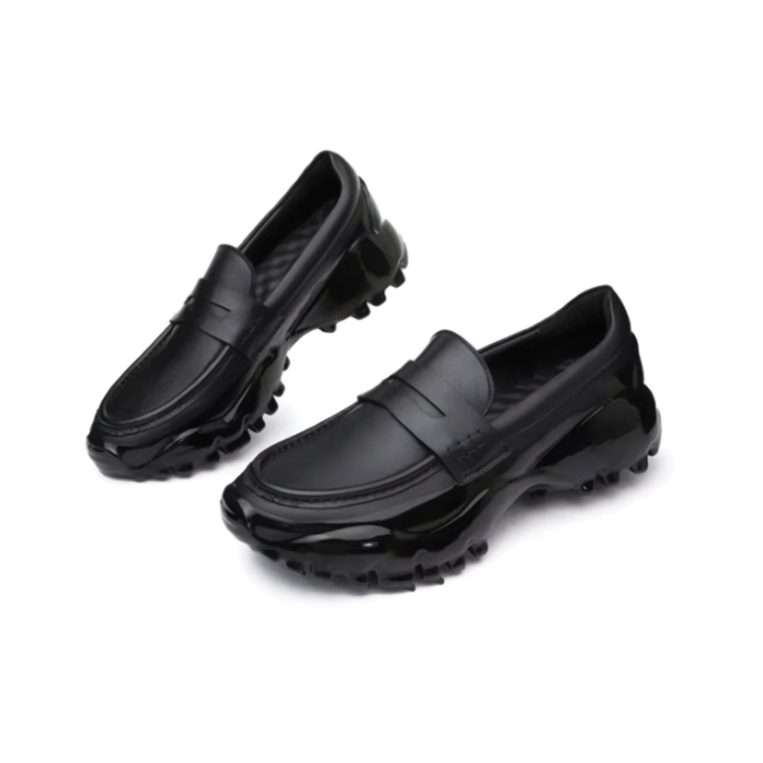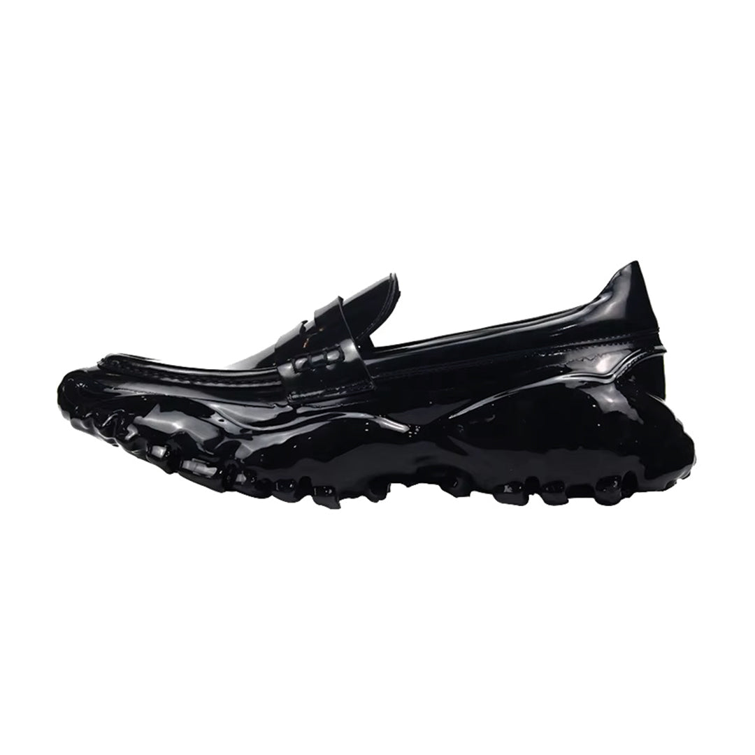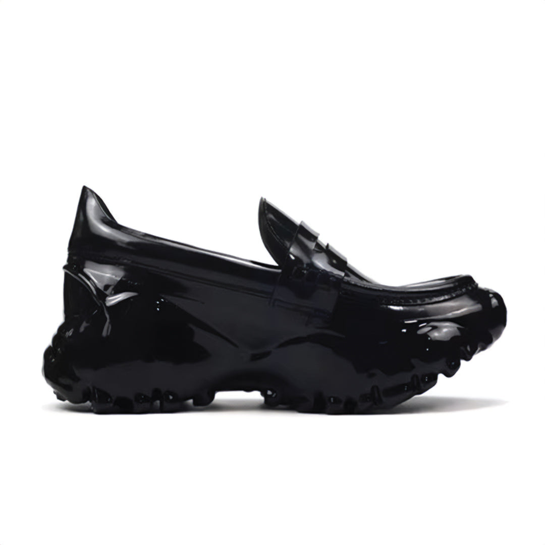 When reality becomes liquid art. Premium leather construction meets gravity-defying sole architecture that appears to defy physics itself. Classic penny loafer silhouettes dissolve into sculptural masterpieces where traditional footwear rules simply don't apply. Molten sole design creates visual drama that stops conversations, built for those who understand that true innovation requires the courage to be completely misunderstood.