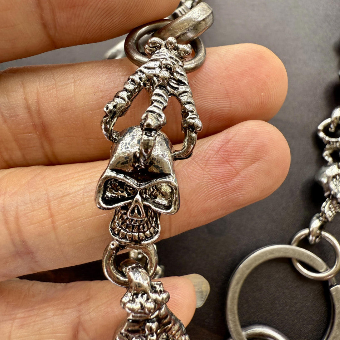 Each skull link tells the same story across premium metal construction that refuses to whisper. Built for those who understand that true style speaks in symbols, not subtlety.