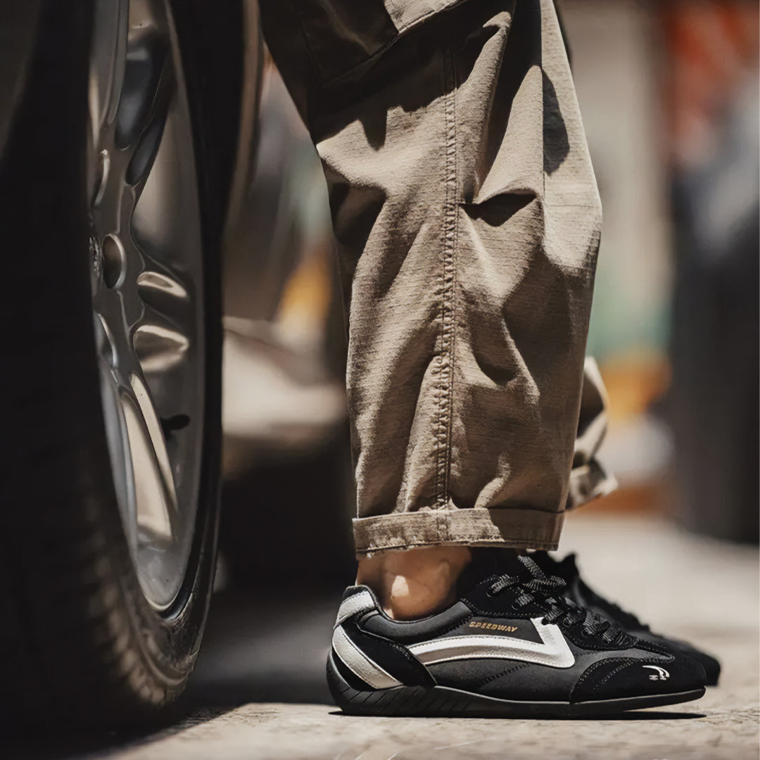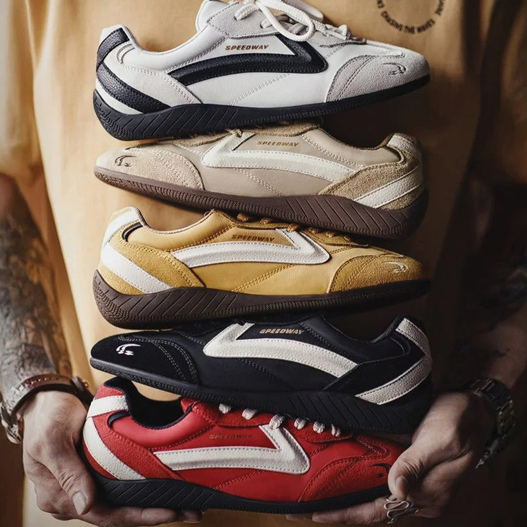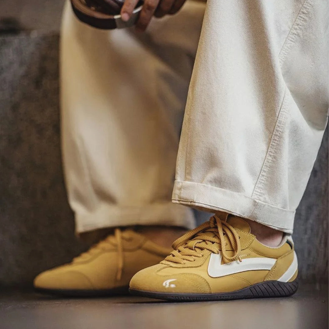 Soft suede construction meets curved leather panel design across vintage-inspired athletic silhouettes, merging considered craftsmanship with everyday versatility. The flat sole engineering delivers all-day comfort while strategic material placement and classic lace-up system transform retro athletic aesthetics into daily essentials that feel authentic without demanding attention.