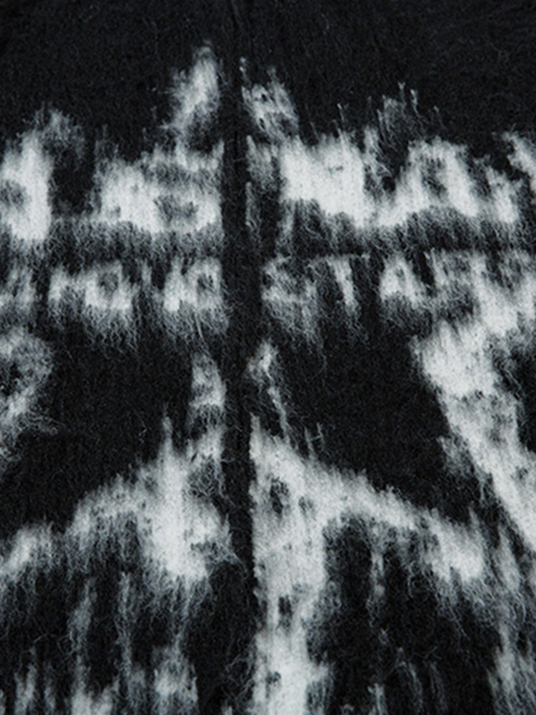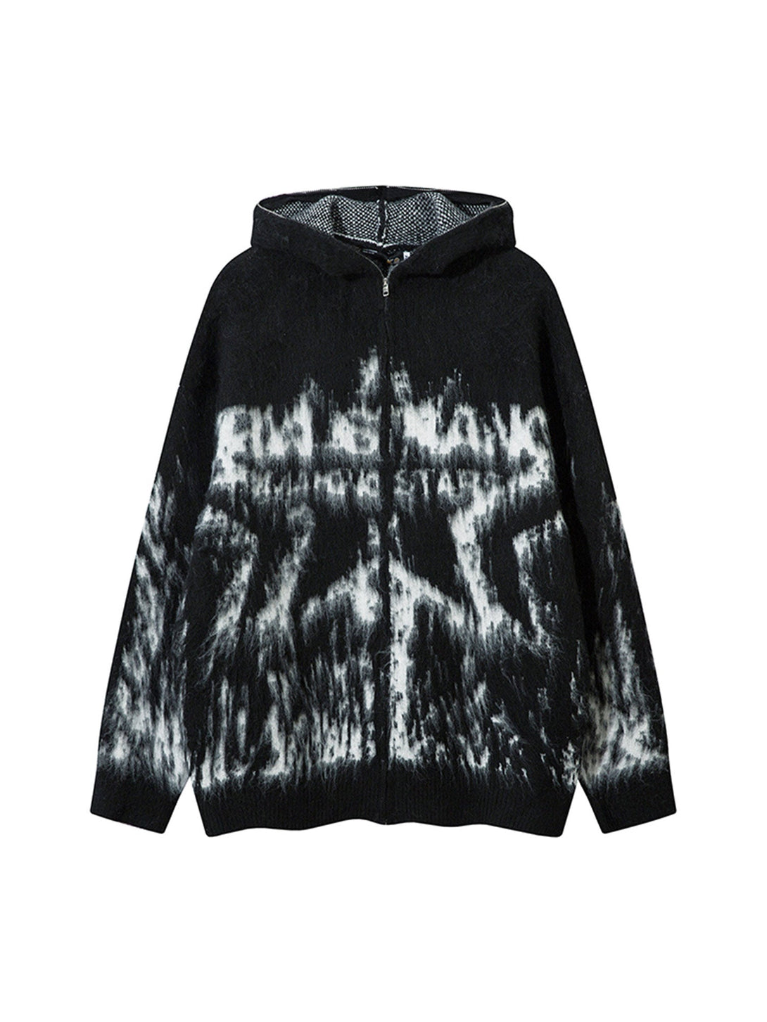 Star Mohair Fuzzy Hooded Zip Up Sweater