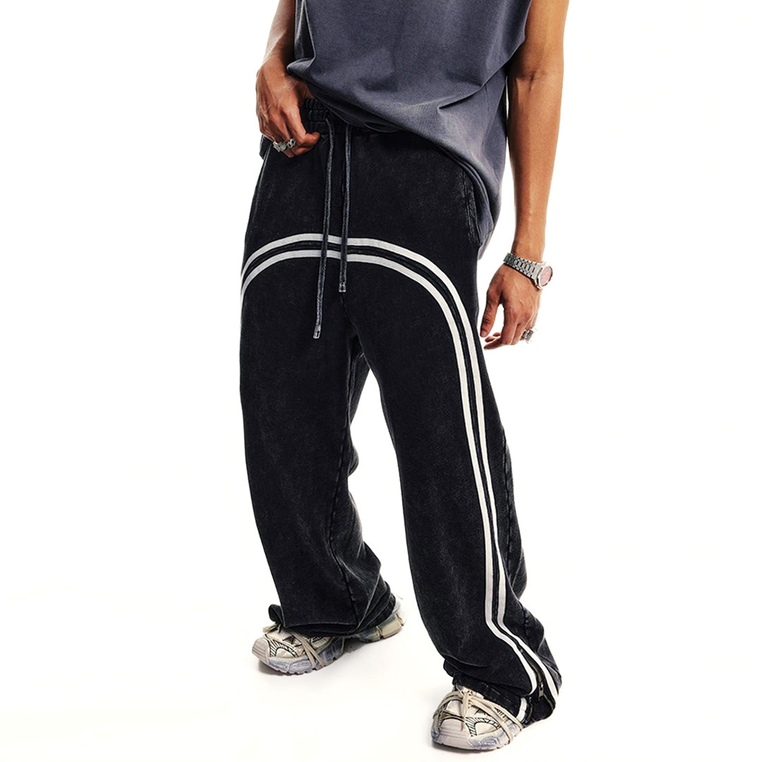 Stripe Loose Wide Leg Bleached Sweatpants