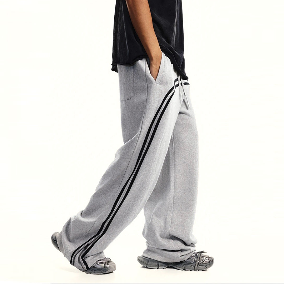 Our Heavyweight Stripe Track Pants are built from 100% premium cotton (380g weight) with classic side stripe detailing designed to honor athletic heritage through contemporary streetwear proportions. The wide-leg construction and adjustable drawstring create relaxed comfort, while our heavyweight fabric blend ensures durability and structure for pieces that move from gym culture to street style. Ankle zip functionality and authentic track styling create pieces that merge athletic tradition with modern urban aesthetics.