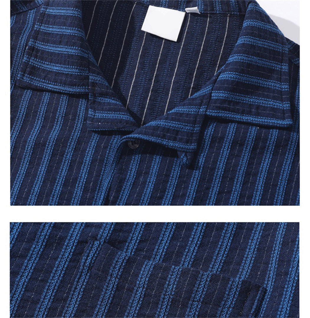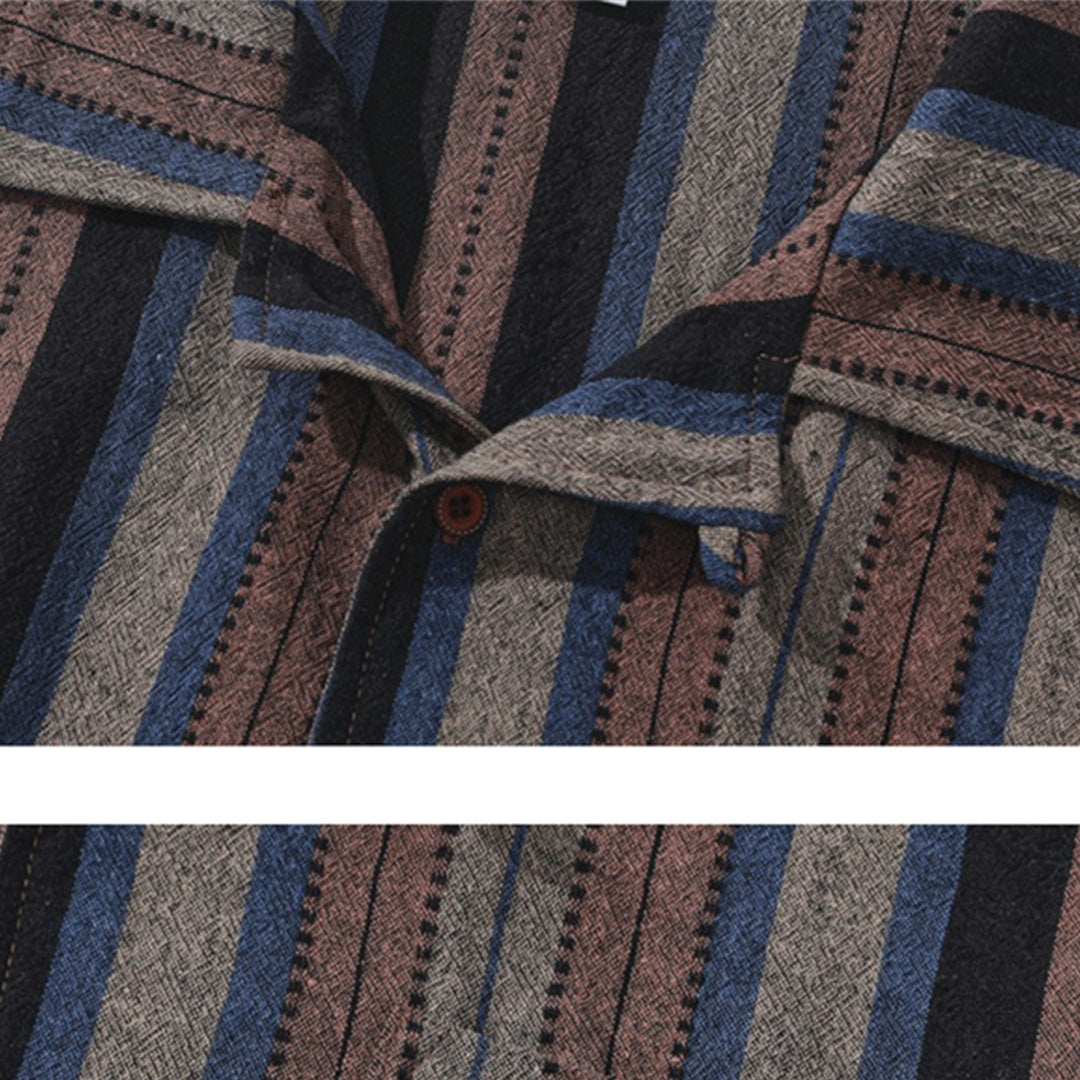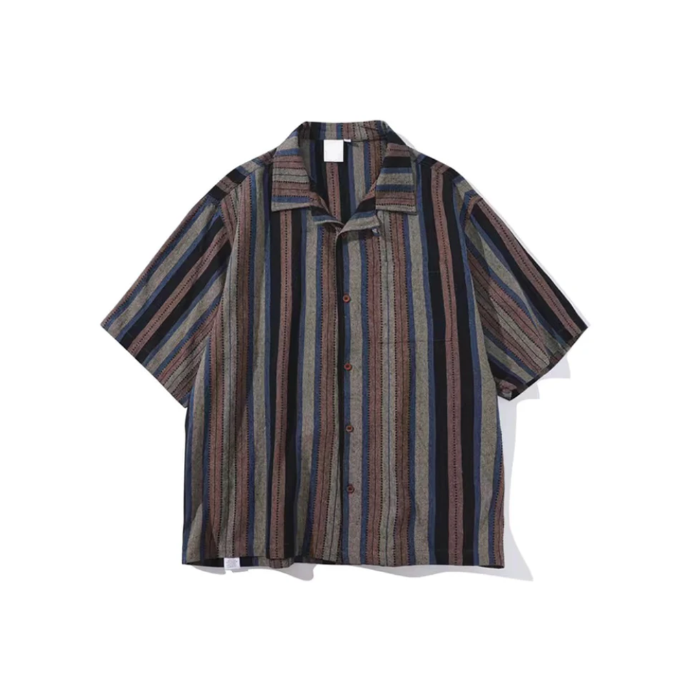 Stripe Short Sleeve Shirt - Relaxed Fit Cotton Linen Earth Tone