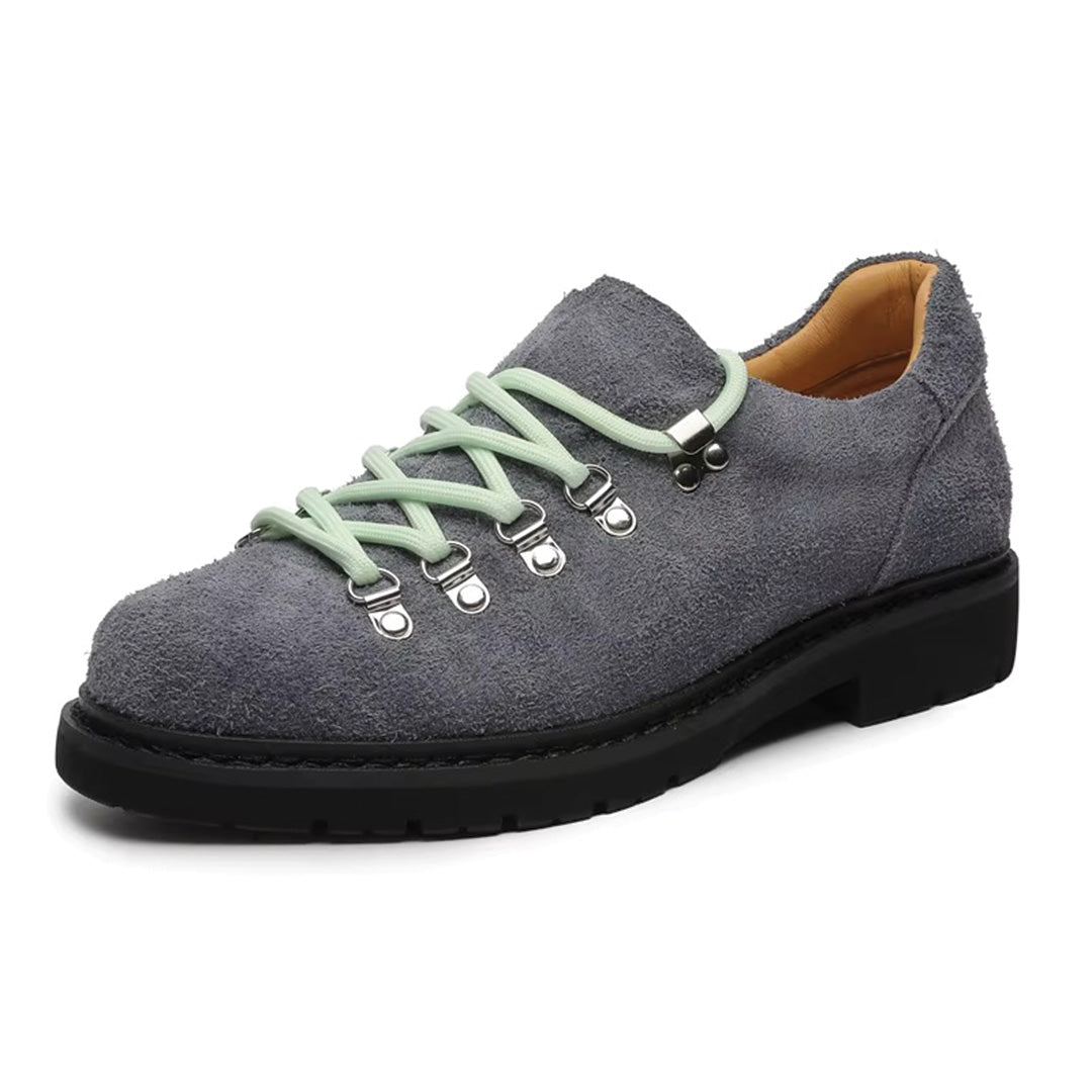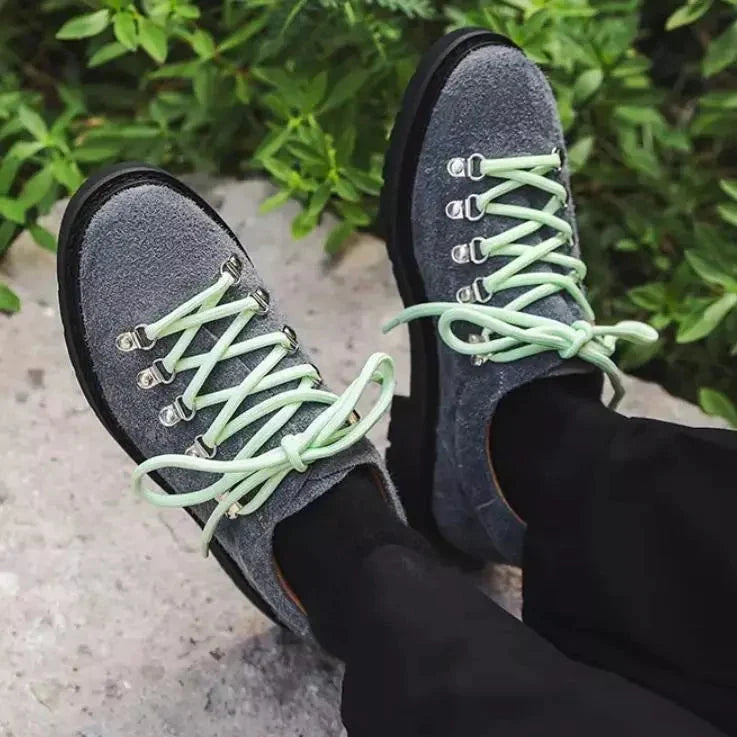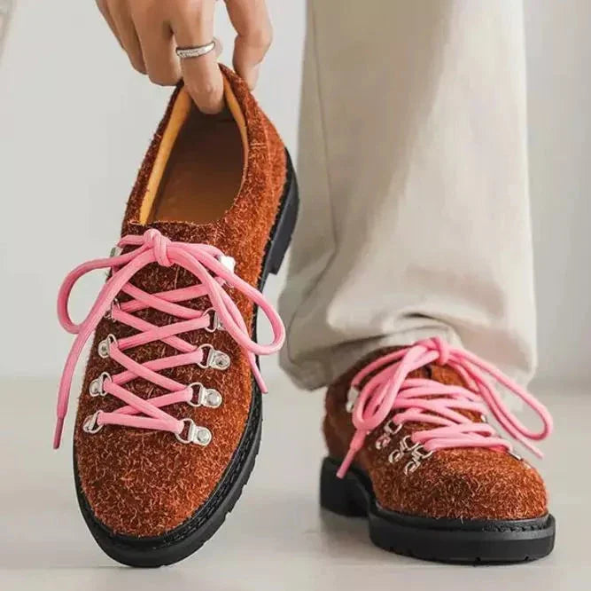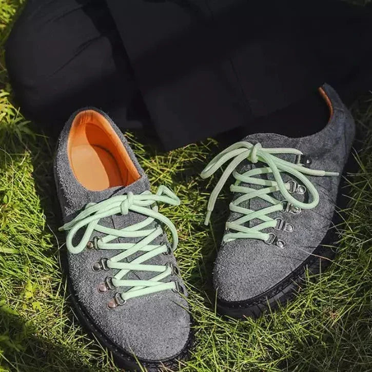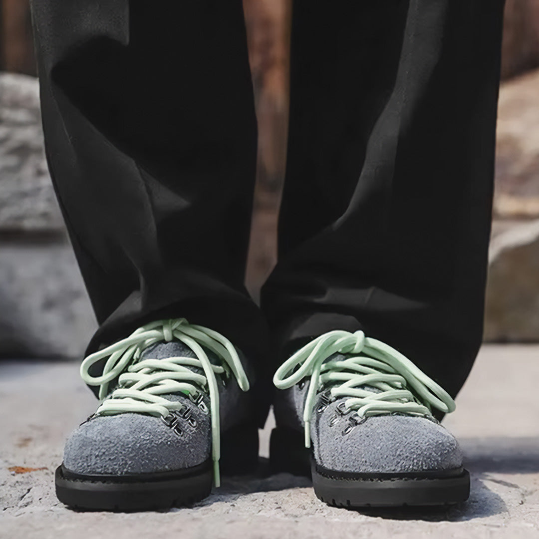 When texture becomes statement. Premium shag-textured uppers meet alpine-inspired hardware across bold color contrasts that refuse to whisper. Mountaineering-grade eyelet systems anchor vibrant lacing while aggressive lug soles ground each step in unwavering traction. These aren't shoes that blend—they're conversations starters built for those who understand that authentic style demands authentic materials.