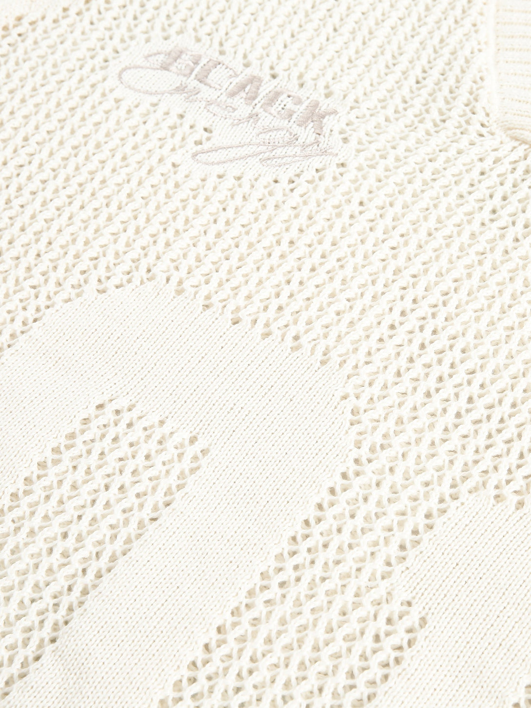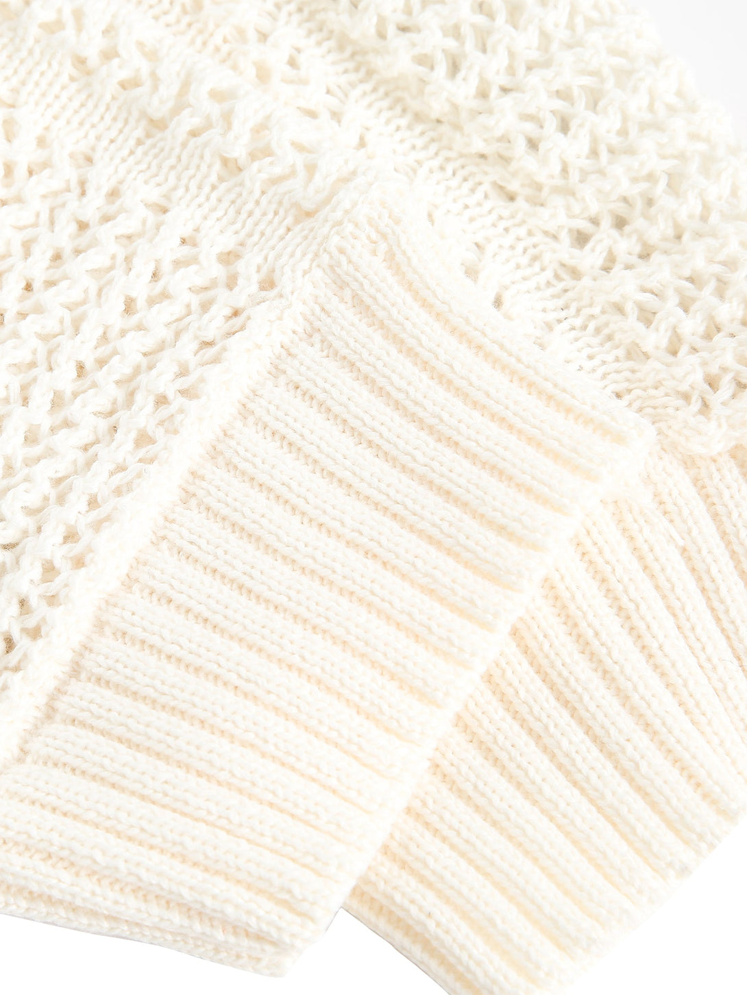 - Material: Chunky cotton knit with perforated texture zones