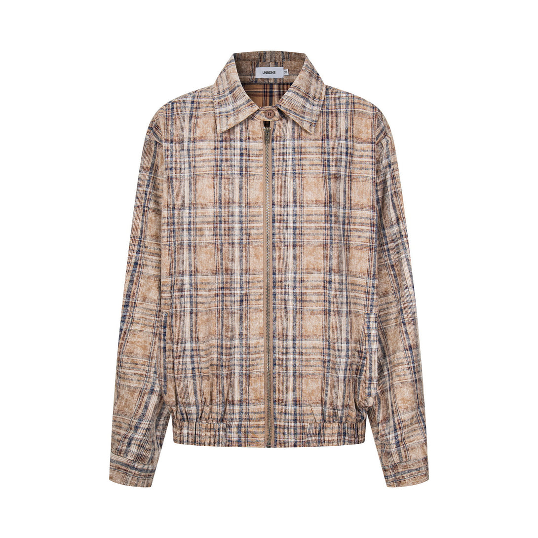 American vintage construction meets contemporary zip-front functionality in this essential shirt-jacket hybrid. Classic plaid weave in blue and tan colorways delivers authentic texture that bridges decades of style evolution. Relaxed proportions and structured collar create effortless layering that transcends seasonal boundaries.