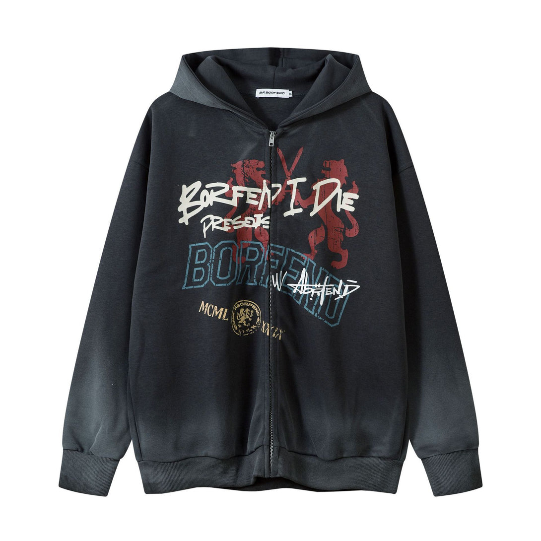 - Product information: Vintage Wash Graffiti Zip-Up Hoodie.