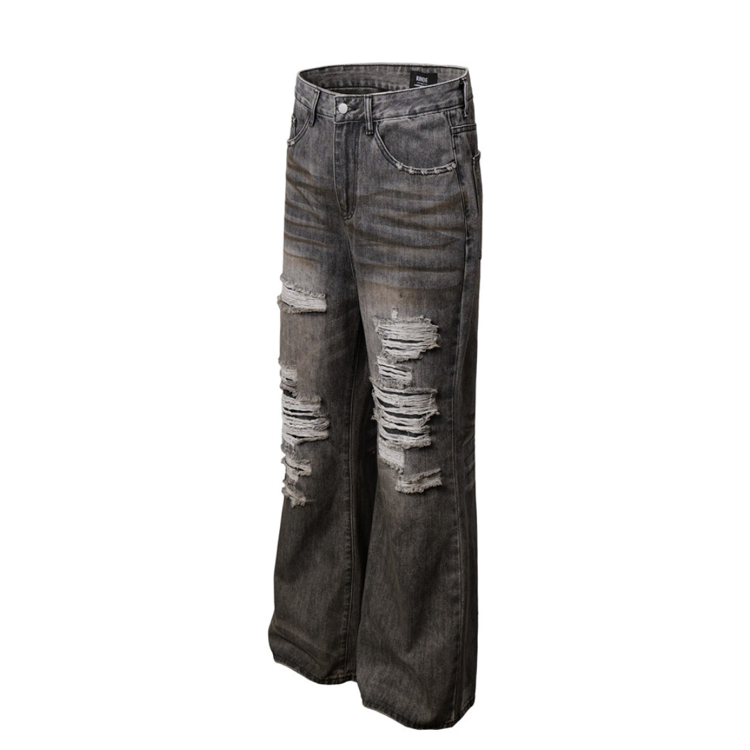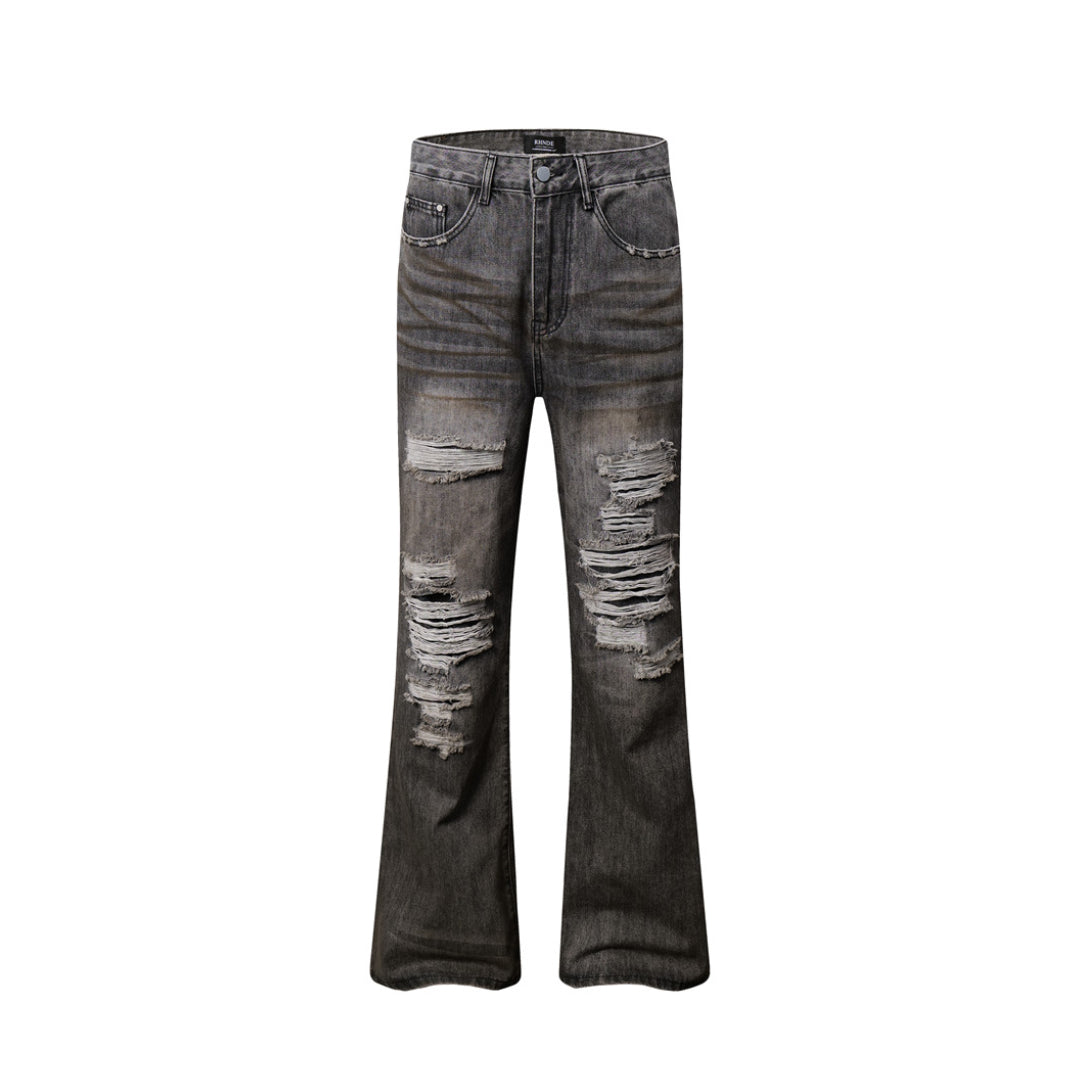 Washed Black Distressed Flare Jeans – Rips & Vintage Fade